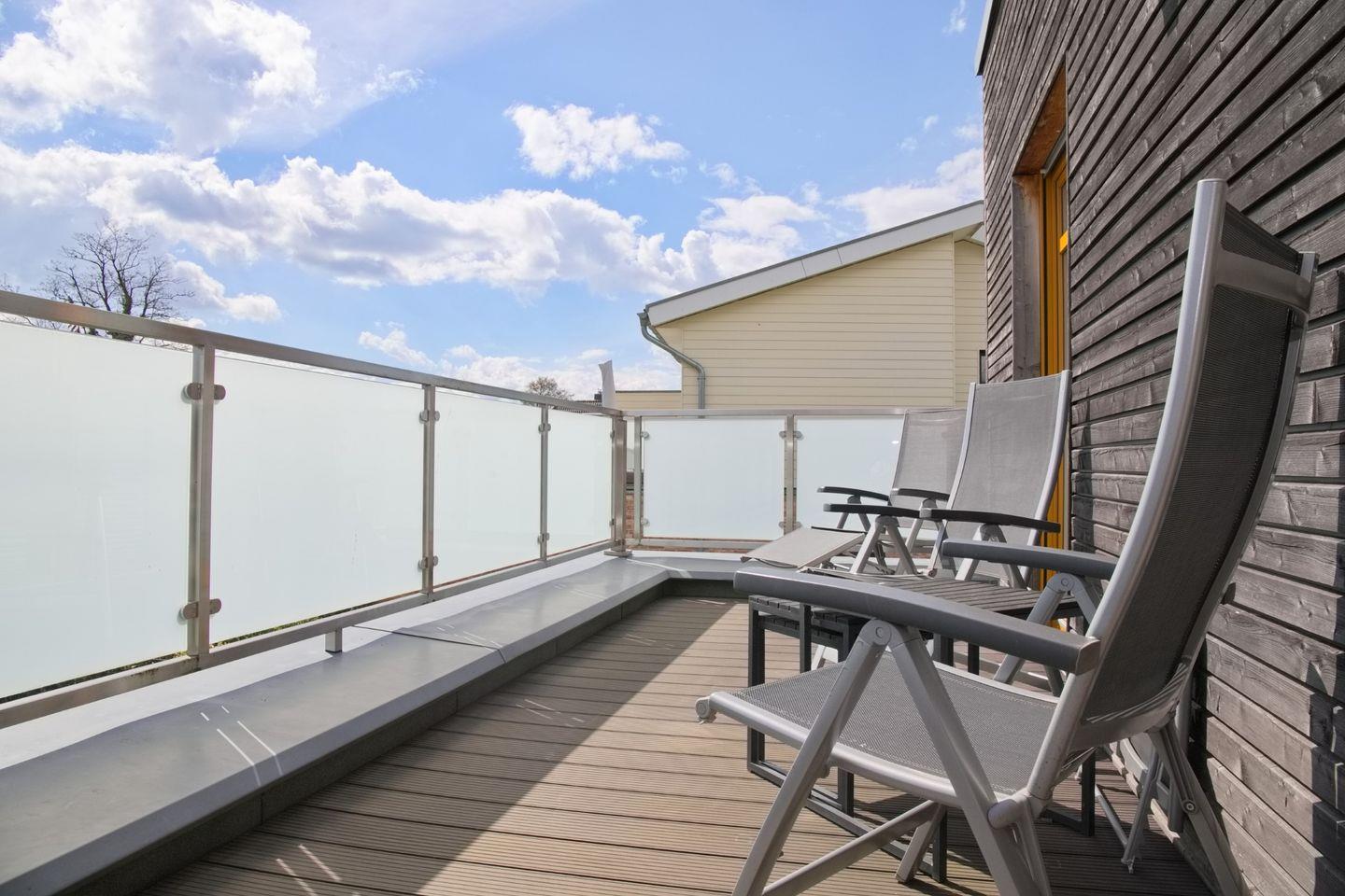 Exklusives Ferienhaus (Reihenendhaus) mit Terrasse, Garten mit kunstrasen und Balkon in Südlage. Eigener Stellplatz. 7 Fußminuten zum Strand. Strandkorb auf der Terrasse.