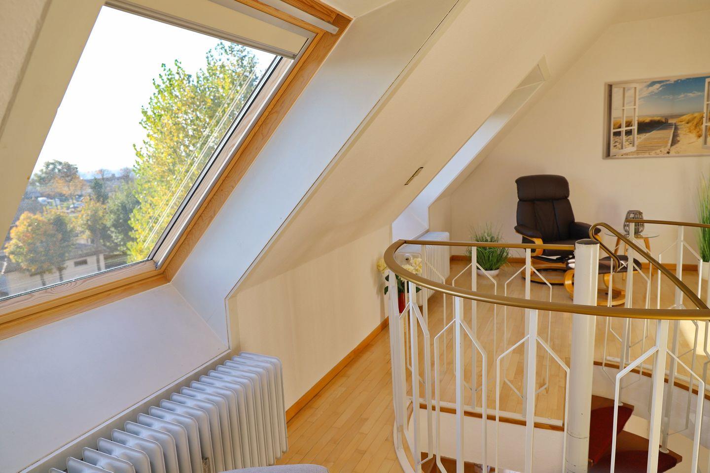 Große, helle und freundliche 3- Zimmer Wohnung für 2-4 Personen im Dachgeschoss über 2 Wohnebenen, mit Balkon in Süd- Westlage und Teilseeblick.
