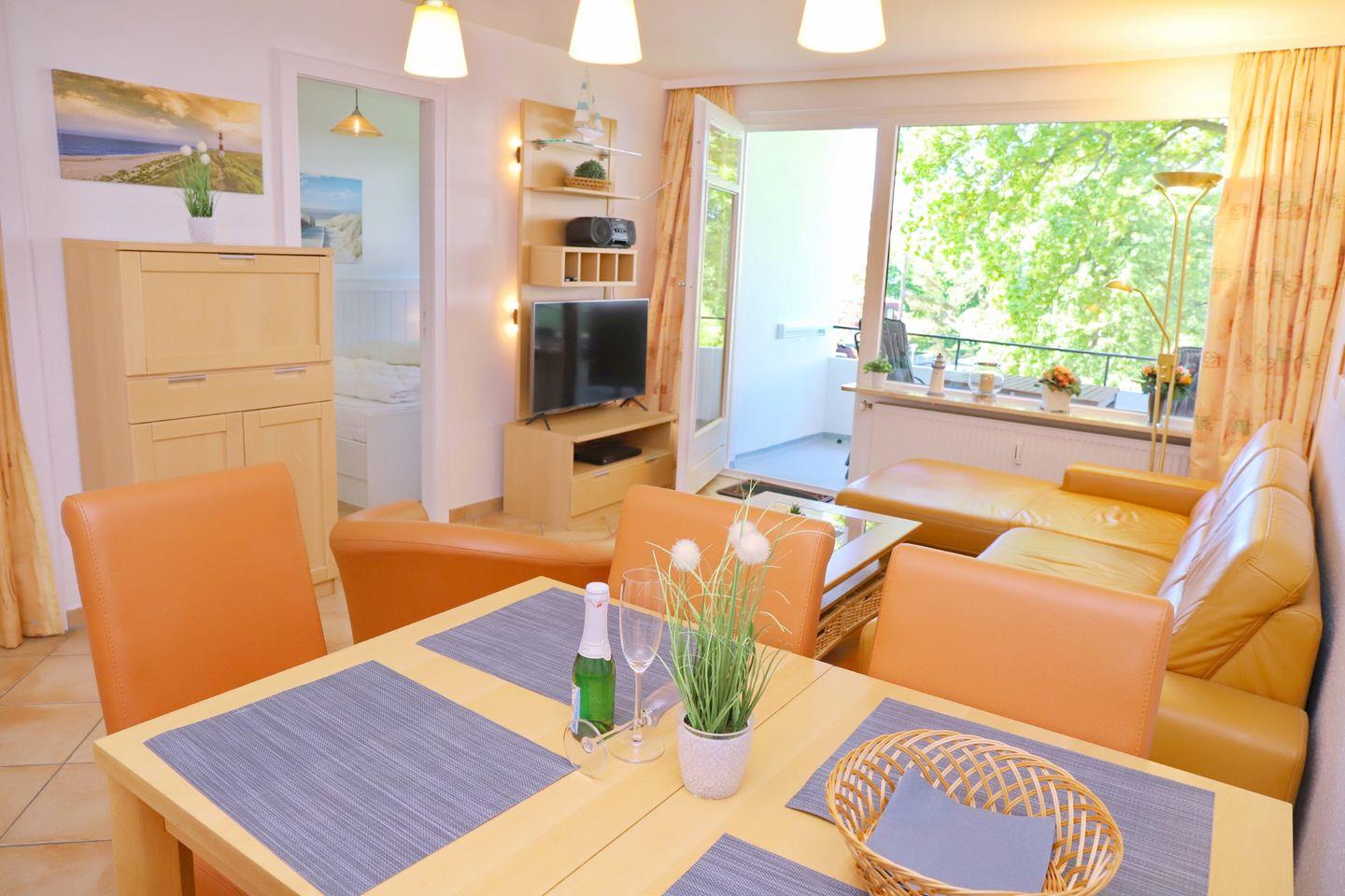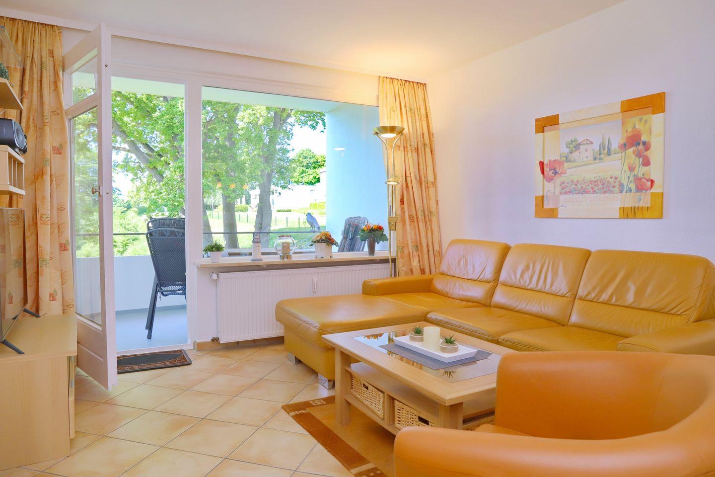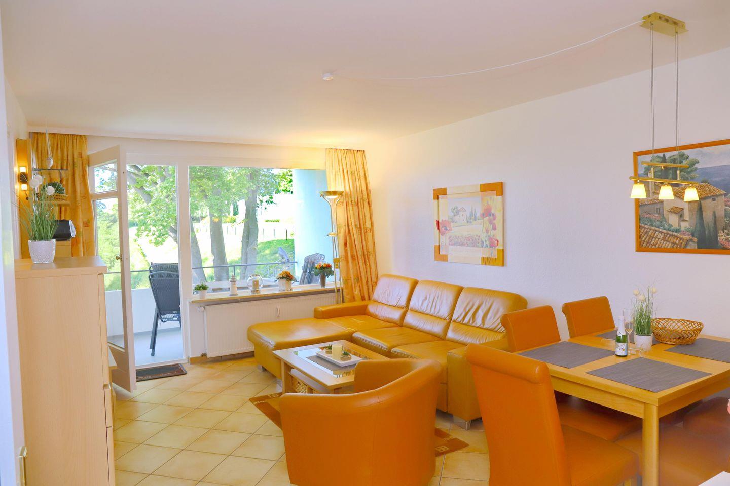 Geschmackvolle Ferienwohnung mit Balkon und Teilseeblick, nur 50 m vom Ostseestrand in Grömitz entfernt.