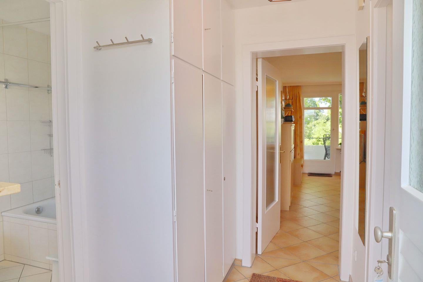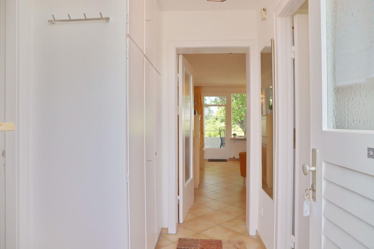 In Ihrem Domizil erwartet Sie auf ca. 50 qm komfortables Wohnen. Es wurde sehr geschmackvoll gestaltet. Hier verbinden sich toskanisches Design und maritime Elemente. Das stimmige Farbkonzept vermittelt entspannte Urlaubsatmosphäre. Geschickt integrierte Einbauschränke im Flur bieten großzügigen Stauraum.