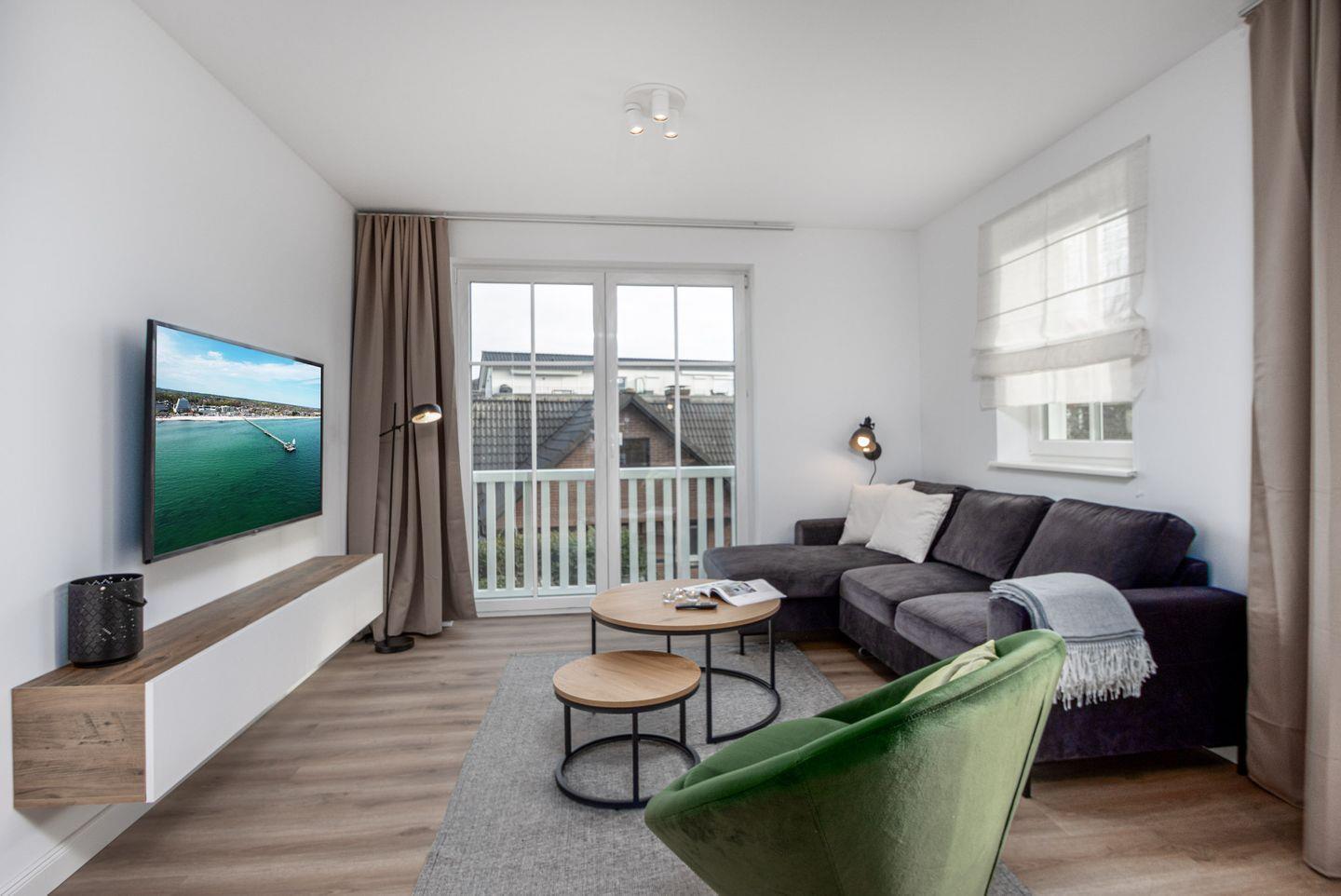 Moderne 2-Zimmer-Ferienwohnung in Grömitz mit WLAN, Balkon und Strandnähe für bis zu 4 Personen inklusive Haustieren.