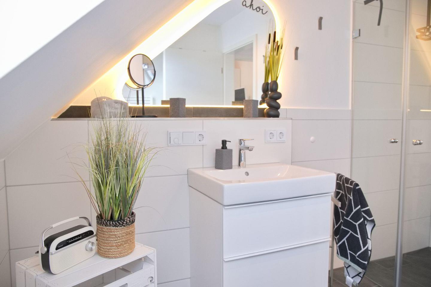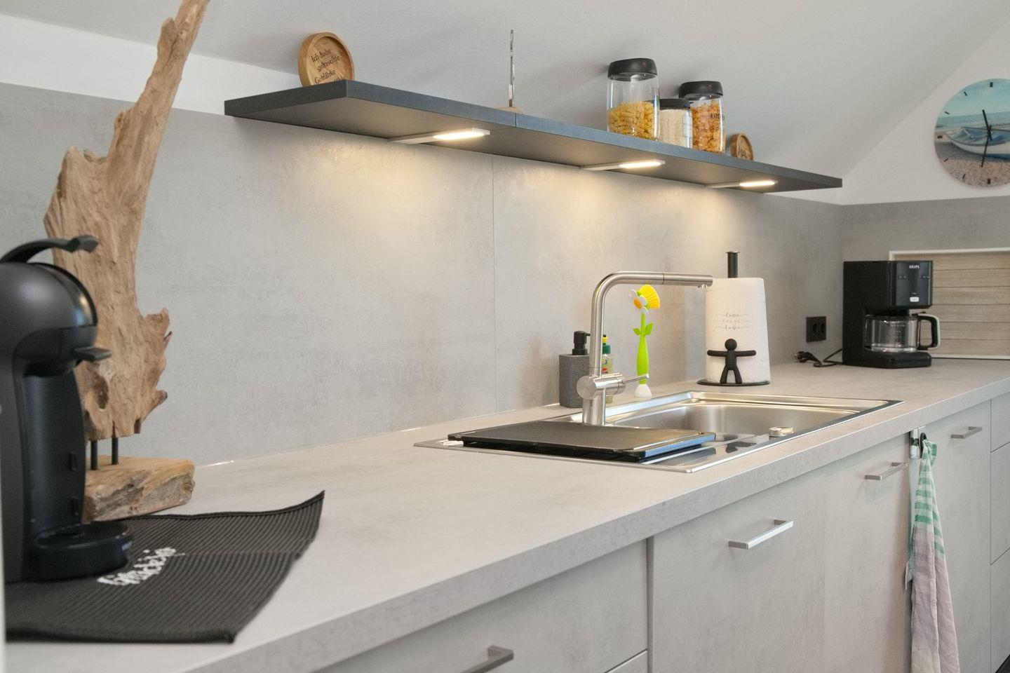 Passend zum Namen "de nüütjes Böhn" präsentiert sich dieses wunderschöne Appartement komplett im Landhausstil: Natürliche Farben, hochwertige Möbel, ein edler Designbelag in Betonfliesenoptik, sowie viele liebevoll ausgesuchte