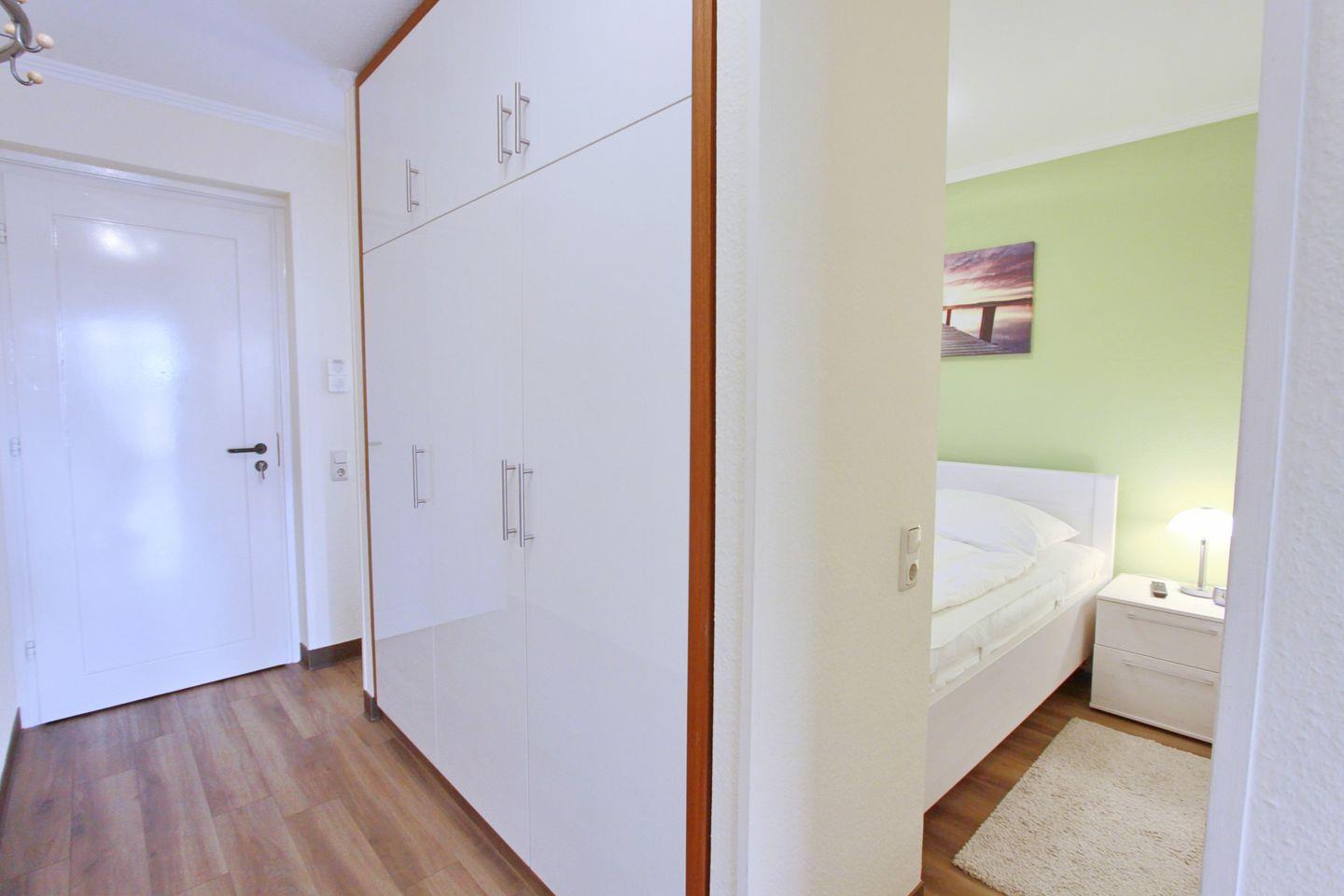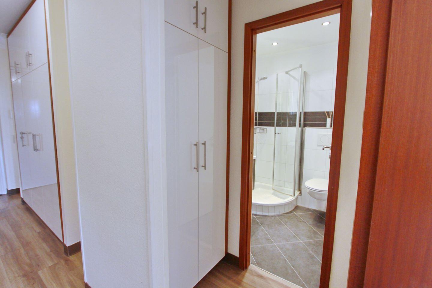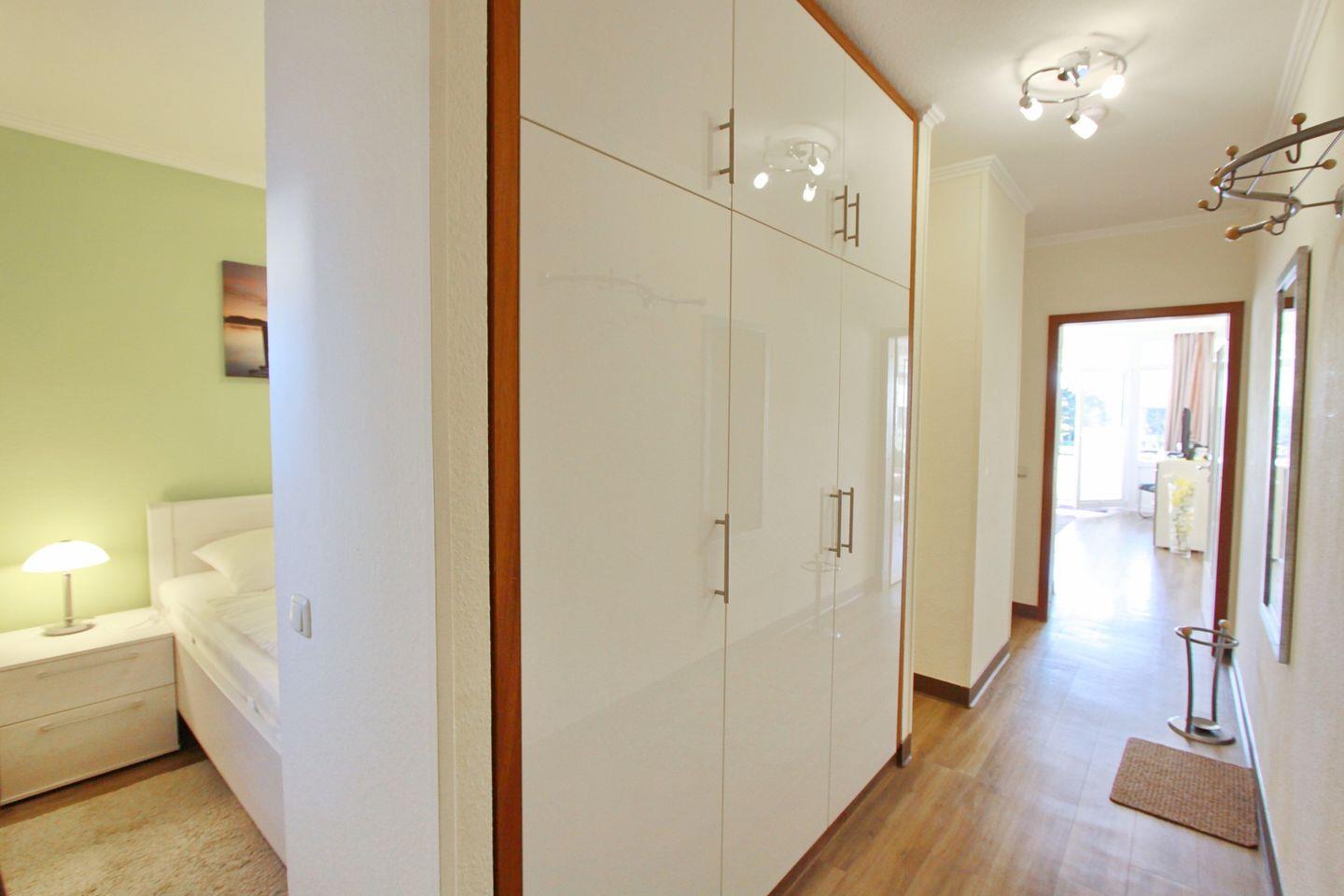 Im Flur befindet sich der Einbaukleiderschrank in dem Sie Ihre Kleidung verstauen können.