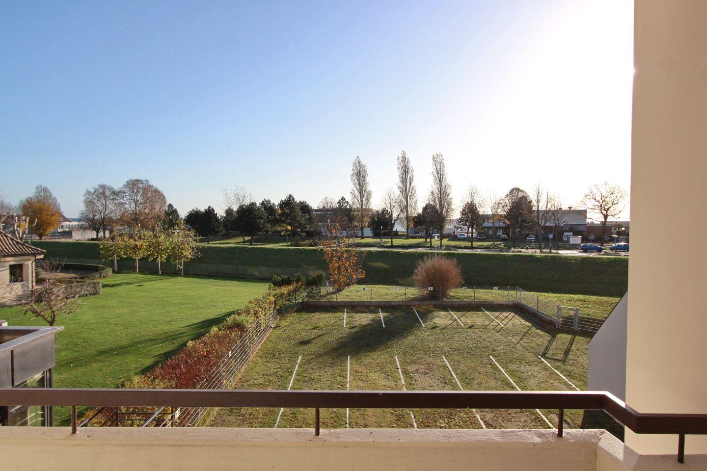 Eine Küche, ein Schlafzimmer und ein geräumiges Wohnzimmer, welches einen direkten Zugang zu dem Balkon bietet.