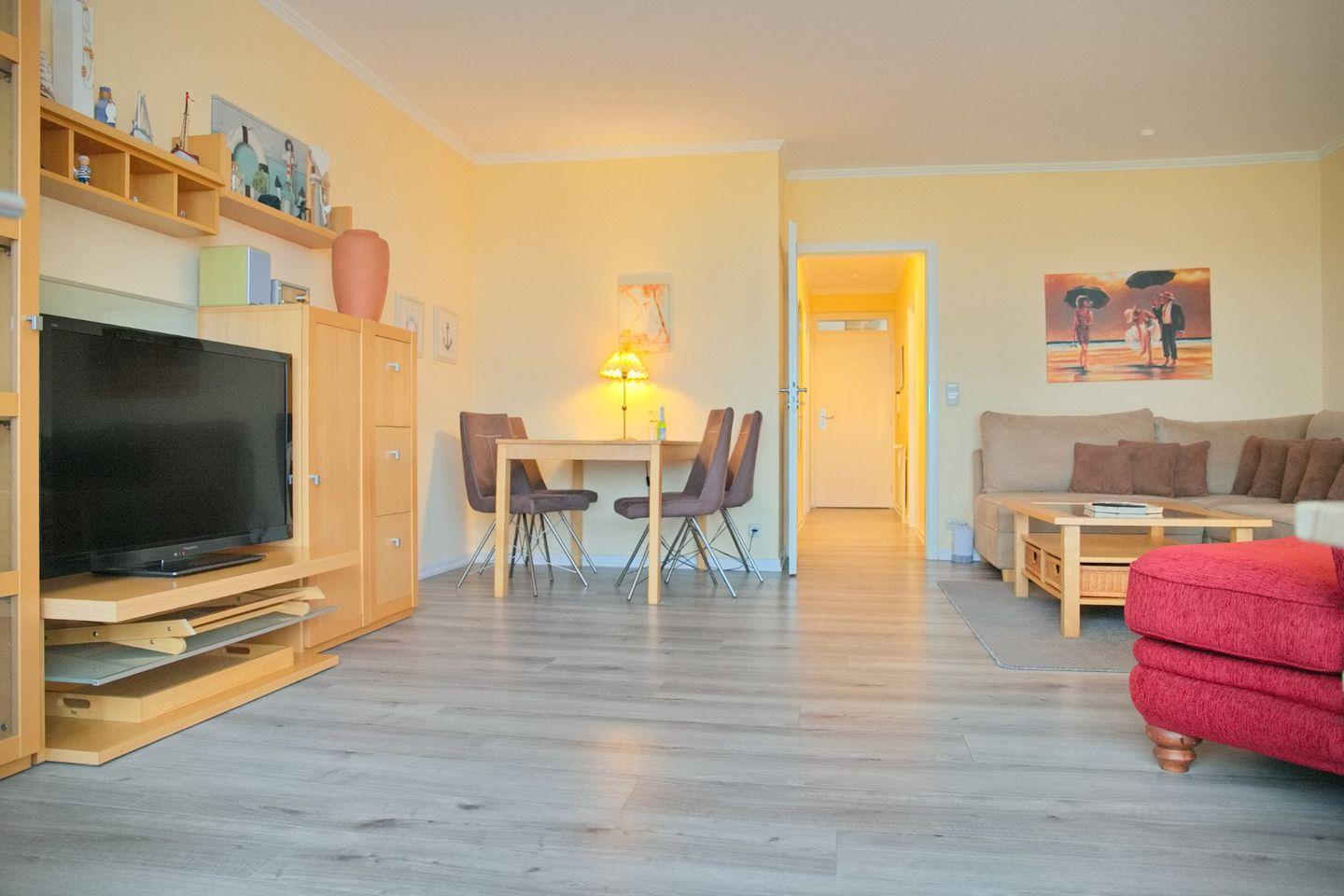 Das große, helle Wohnzimmer mit Blick über die Ostsee heißt Sie in warmen Farben willkommen. An den komfortablen Wohnbereich schließt sich die Essgruppe an. In der Küche können Sie Ihren Kochkünsten freien Lauf lassen.