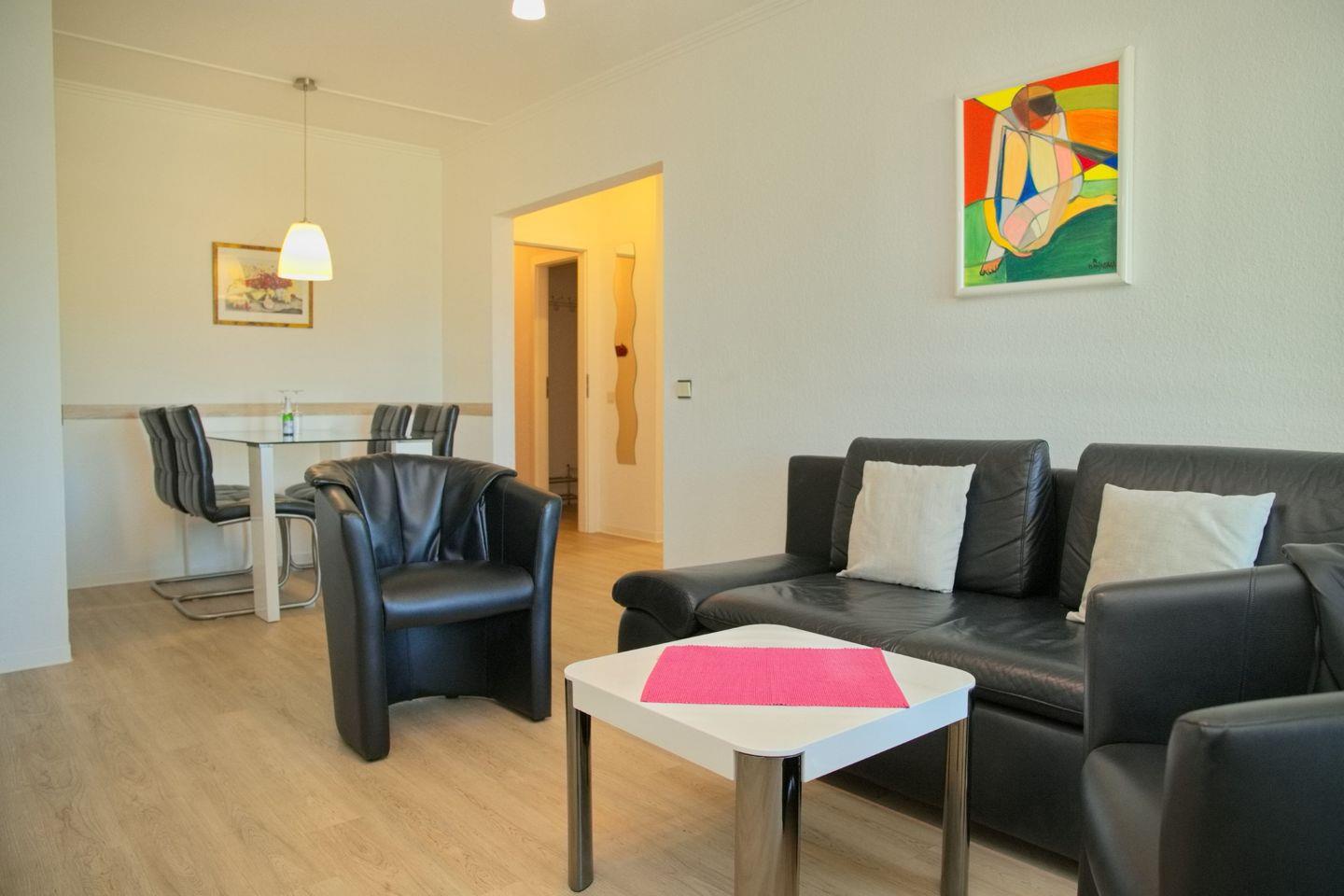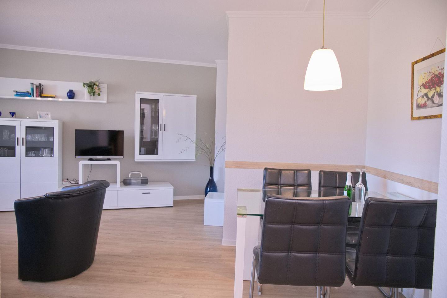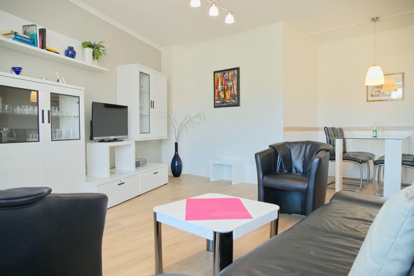Genießen Sie ihren Urlaub in dieser modernen 2 Zimmerwohnung mit etwa 45 m² und möblierten Nord-Westbalkon direkt am Deich.