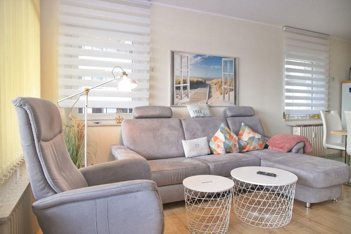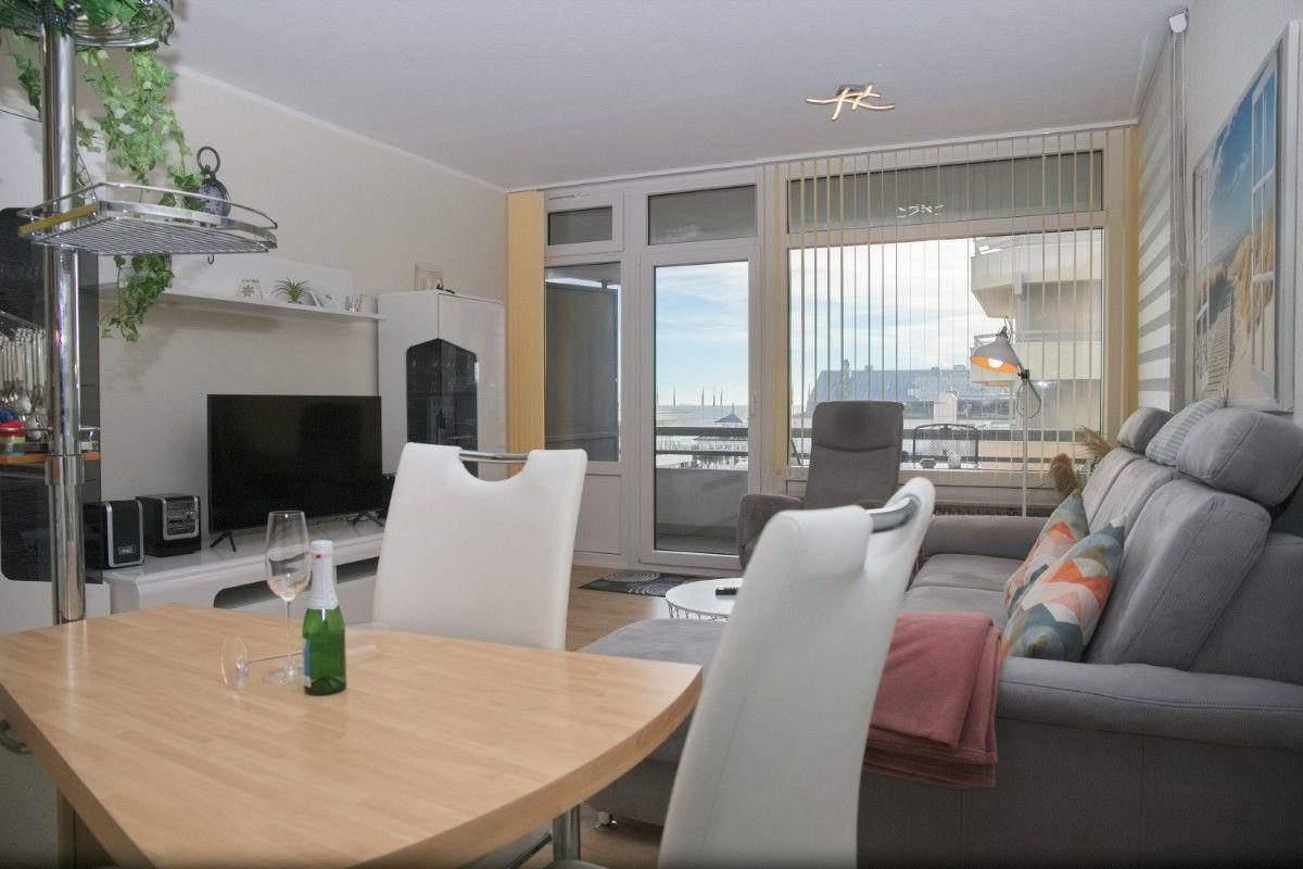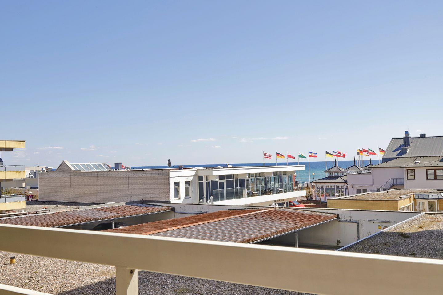 Grandiose Lage mit kleinem Meerblick. Charmant gepflegte Ferienwohnung mit möblierten Süd-/ Westbalkon und Strandkorb am Seebrückenvorplatz.