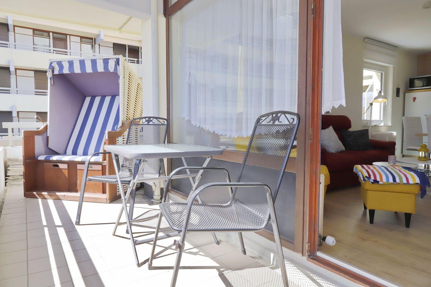 Vom Wohnbereich aus erreichen Sie Ihren Eckbalkon mit Süd-/Westausrichtung, der im Sommer möbliert ist. Ein Strandkorb findet hier ebenfalls seinen Platz. Hier lässt es sich wunderbar mit einem leckeren Kaffee in den Tag starten. Zahlreiche Sonnenstunden garantiert!
