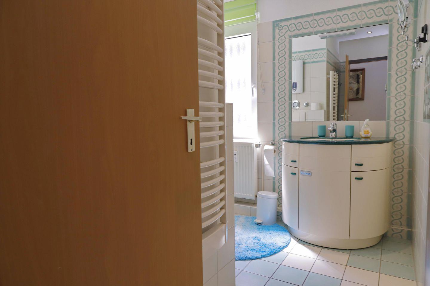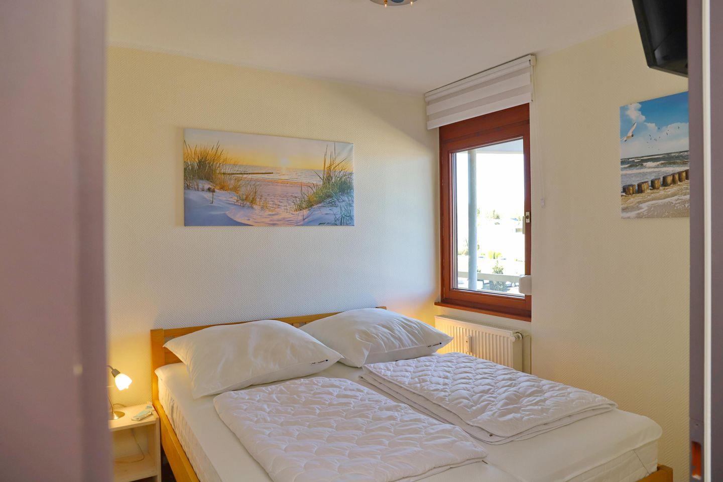 Entspannen Sie sorglos nach Ihrem Strandtag im separaten Schlafzimmer mit komfortablem Doppelbett (2x80x200cm). Verdunklungsmöglichkeit sorgen für tiefen Schlaf und der geräumige Kleiderschrank offeriert ausreichend Platz für Ihre Urlaubsgarderobe. Auch das Bad begeistert mit wertiger Moderne und Annehmlichkeiten wie einer Badewanne mit Duschvorrichtung, einem Waschtisch mit beleuchteten Spiegel und Kosmetikspiegel, WC und Fenster.