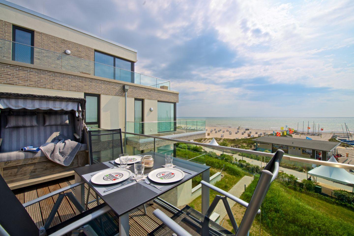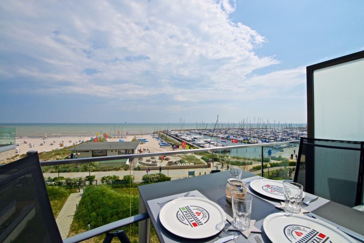 Moderne und stilvolle 3-Zimmer-Wohnung für 5 Personen mit 100 % Seeblick, direkt am Strand und fantastischem Blick in den Yachthafen Grömitz.