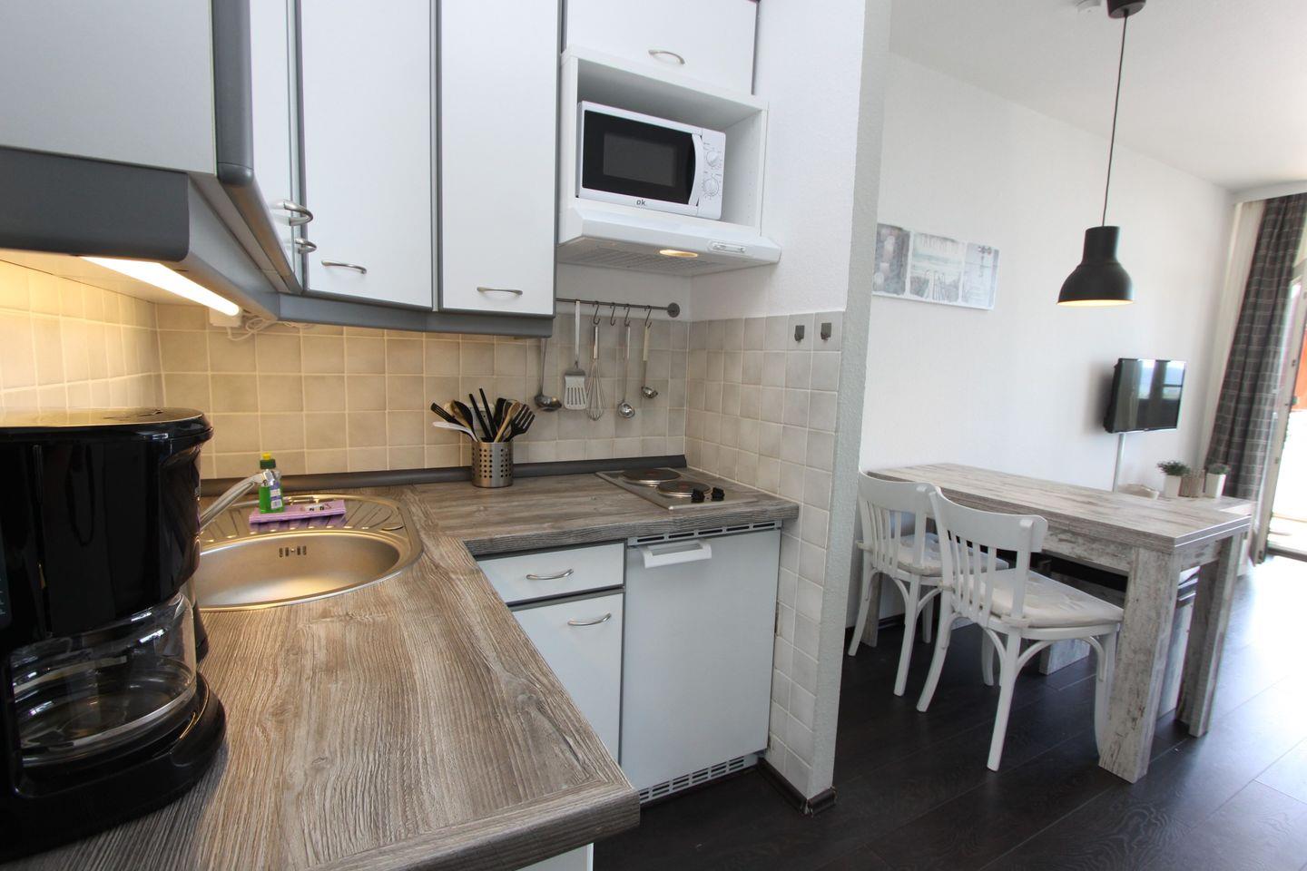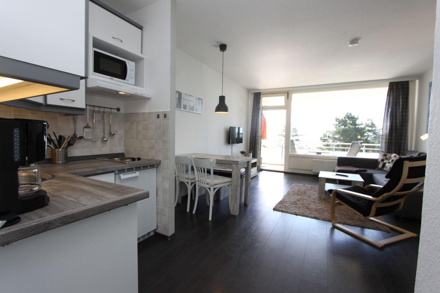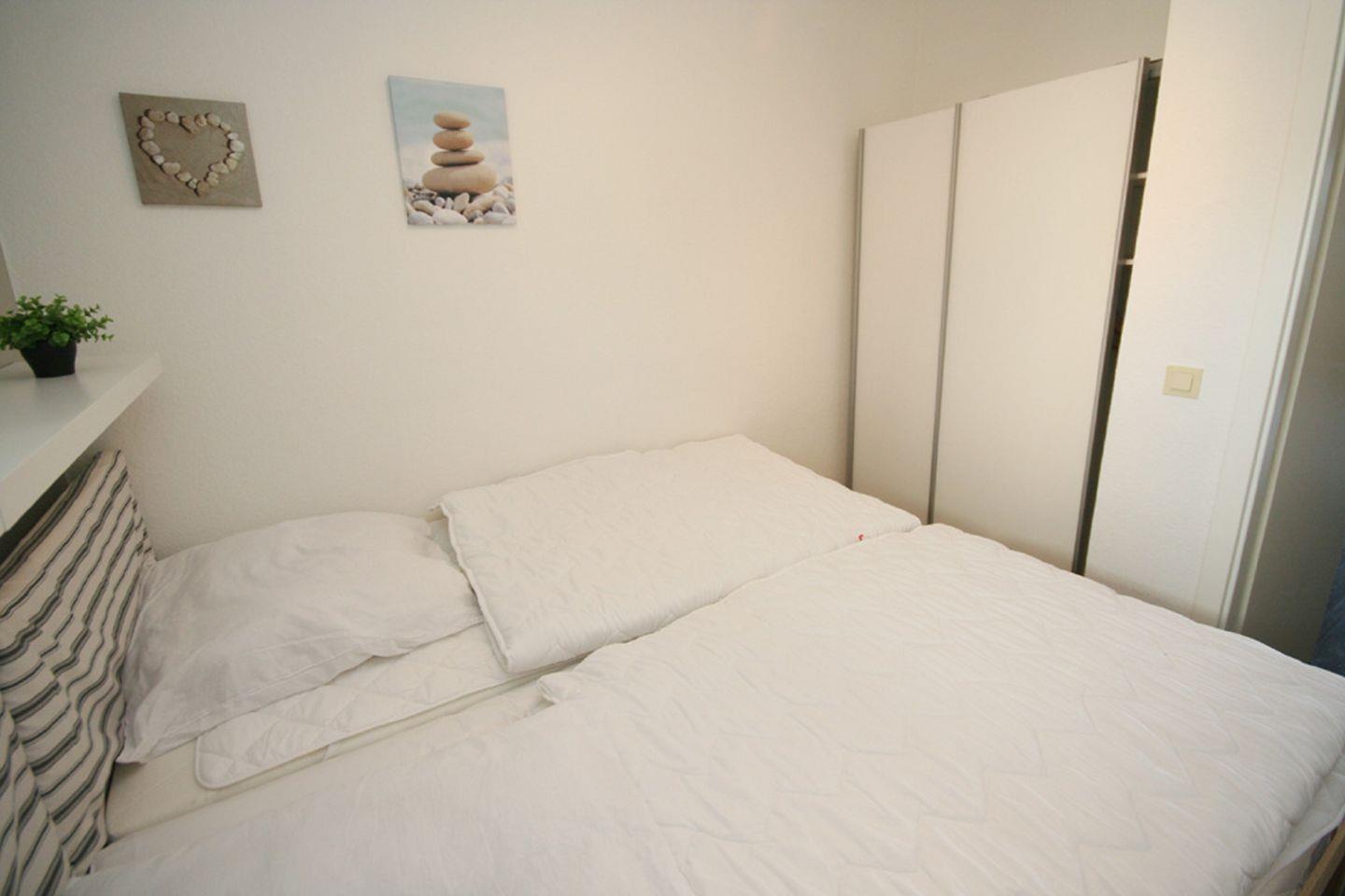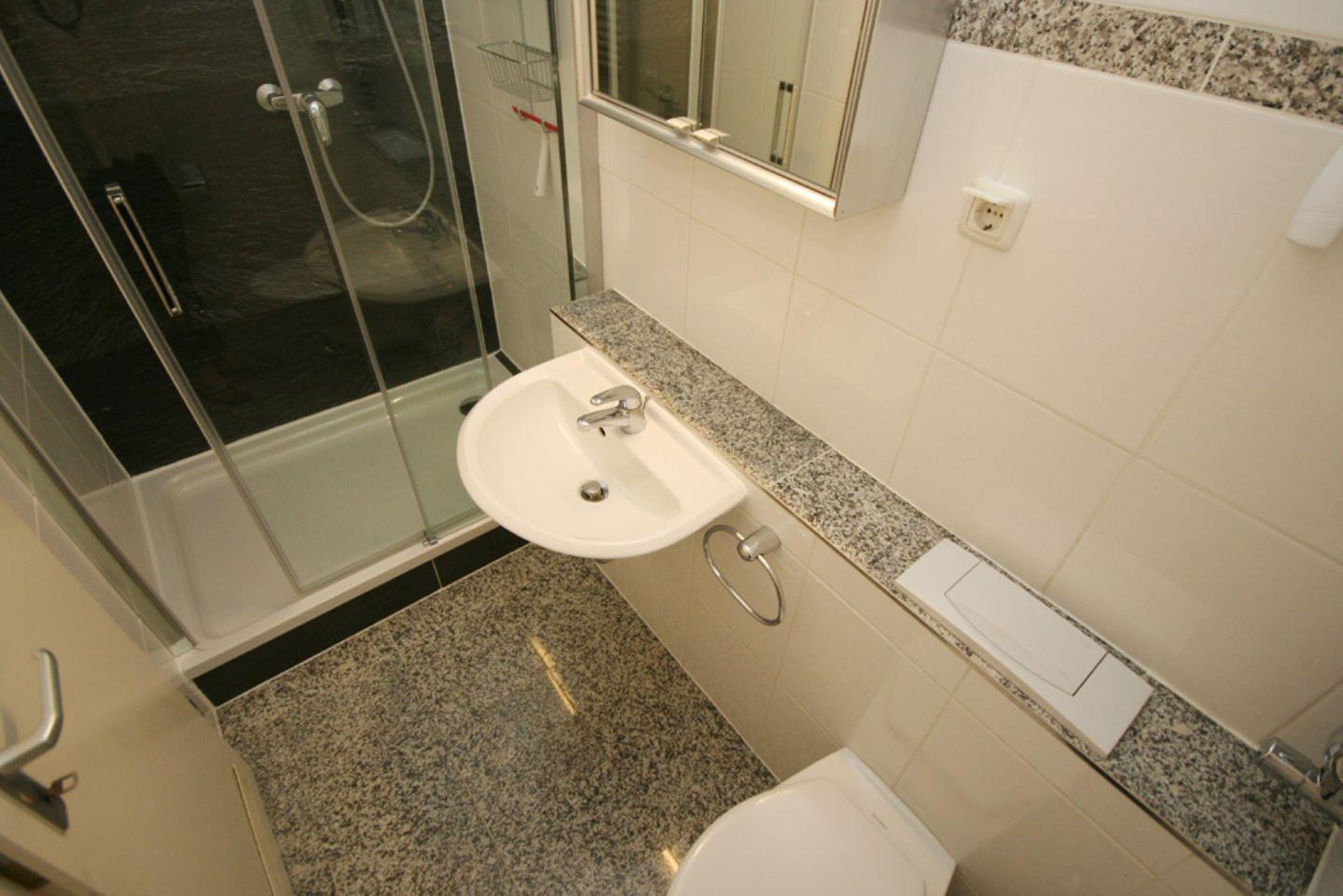 Die kleine Pantryküche ist ausgestattet mit einem 2- Plattenherd, einem Geschirrspüler, einer Mikrowelle mit Grillfunktion, einem Kühlschrank mit Gefrierfach, einem Wasserkocher, einem Toaster und einer Kaffeemaschine. Im separaten Schlafzimmer stehen 2 Einzelbetten, die sich leicht zusammen schieben lassen. Das neue Duschbad ist mit hochwertigen Granitfußboden ausgelegt, sowie einer geräumigen schönen Dusche, ein Waschbecken und ein Hänge-WC. Die Wohnung ist mit einem Designerboden ausgelegt.