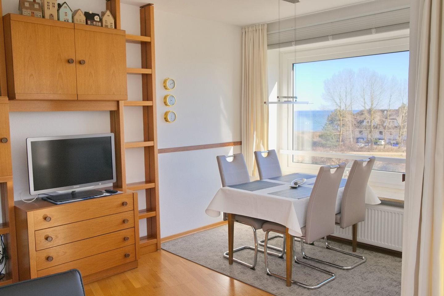 Gemütliche Ferienwohnung mit möbliertem Südbalkon und Panoramablick über die Lübecker Bucht in Grömitz.