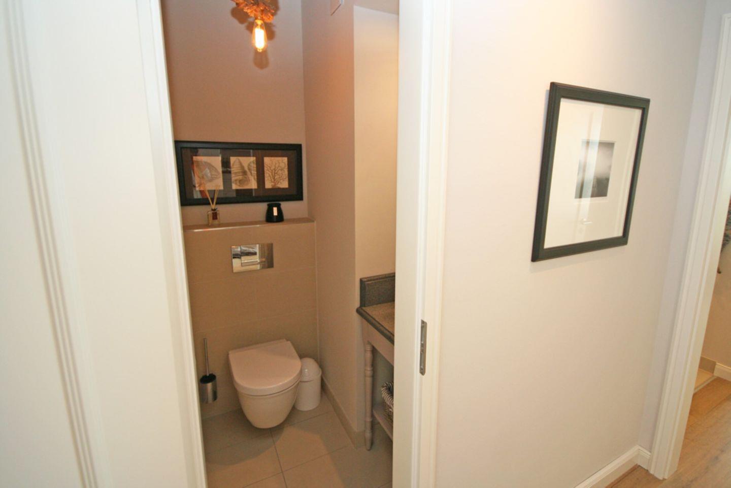 Die Einbauküche ist mit einem Backofen, einem Cerankochfeld, einem Geschirrspüler, einer Kühl-Gefrierkombination, einer Kaffeemaschine, einem Wasserkocher sowie einem Toaster ausgestattet.