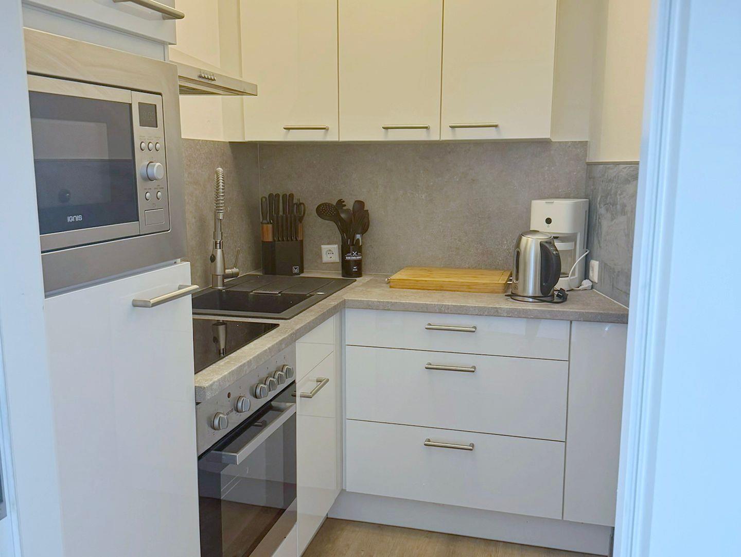 Die separate Küche ist komplett ausgestattet mit einem Cerankochfeld, Backofen, Kühlschrank mit Gefrierfach, Wasserkocher, Toaster und Kaffeemaschine – alles, was Sie für die Zubereitung Ihrer Lieblingsgerichte benötigen.