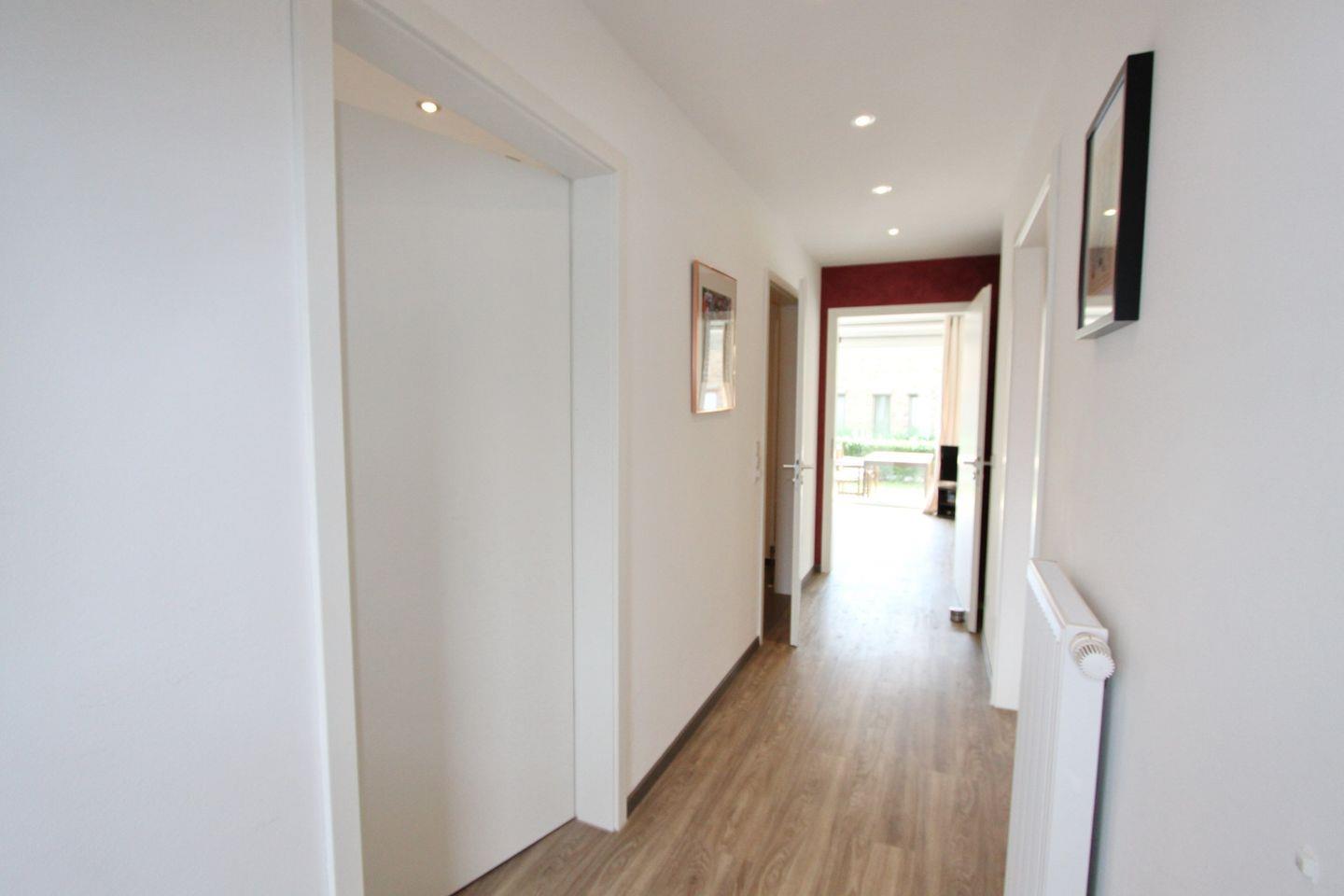 Die gesamte Ferienwohnung ist mit Planken ausgelegt und hat dimmbare Deckenspots.