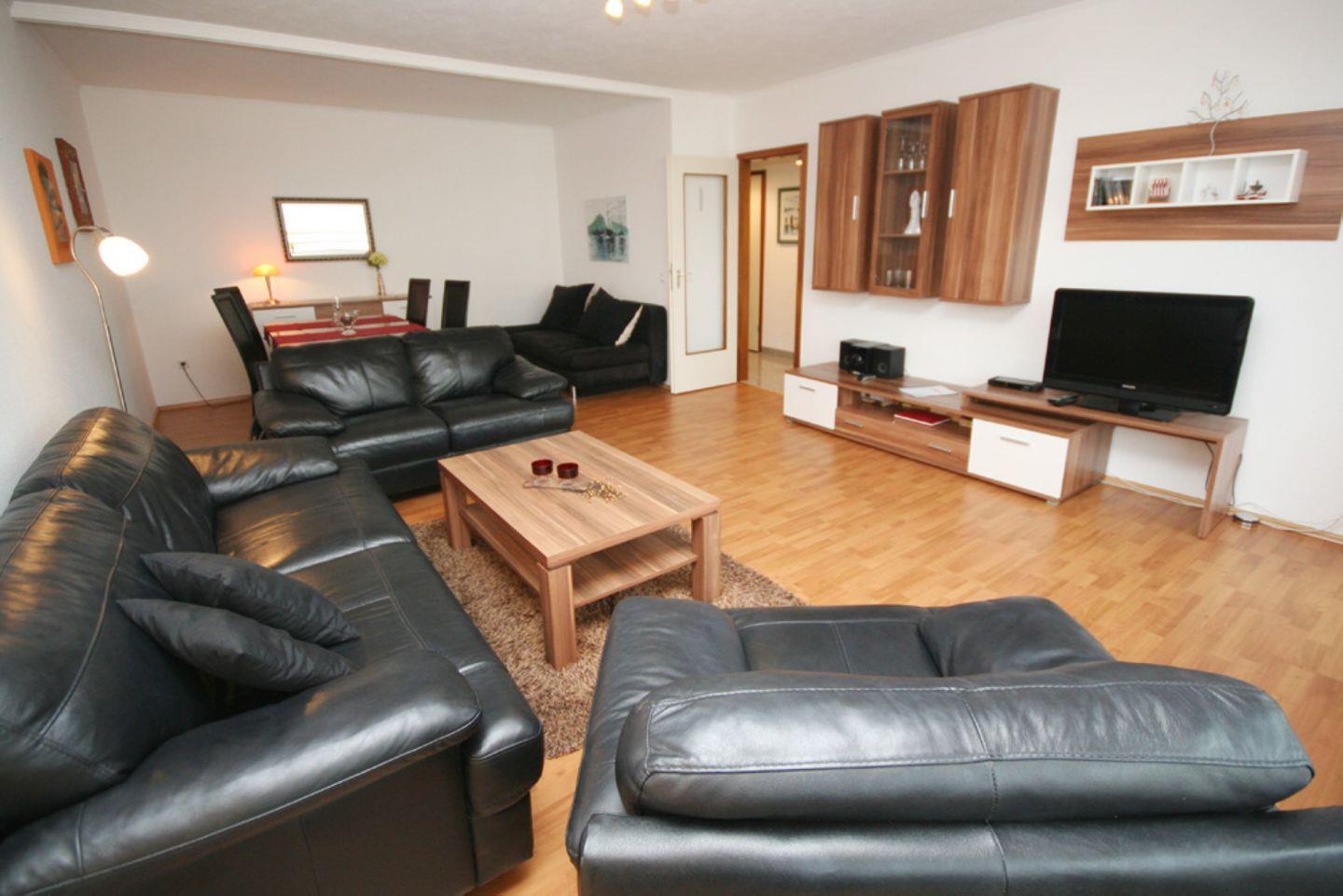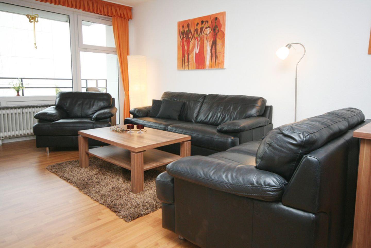 Der Balkon lädt bei dem Seeblick zum entspannen ein. Die Wohnung ist für max. 4 Personen ausgestattet. Das Wohnzimmer ist mit einer Ledergarnitur, einen Flach-TV, ein Radio mit Stereoanlage, einer separaten Schlafcouch für 2 Personen sowie einer Essecke mit 4 Stühlen ausgestattet.