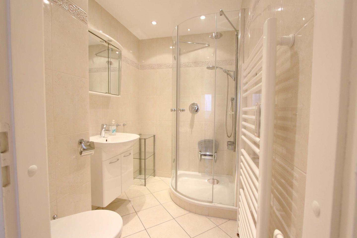 Zu Ihrer Linken kommen Sie in die separate Einbauküche mit Cerankochfeld, Mikrowelle mit Backfunktion, Geschirrspüler, Kühlschrank mit Gefrierfach, Wasserkocher, Toaster und Kaffeemaschine.
