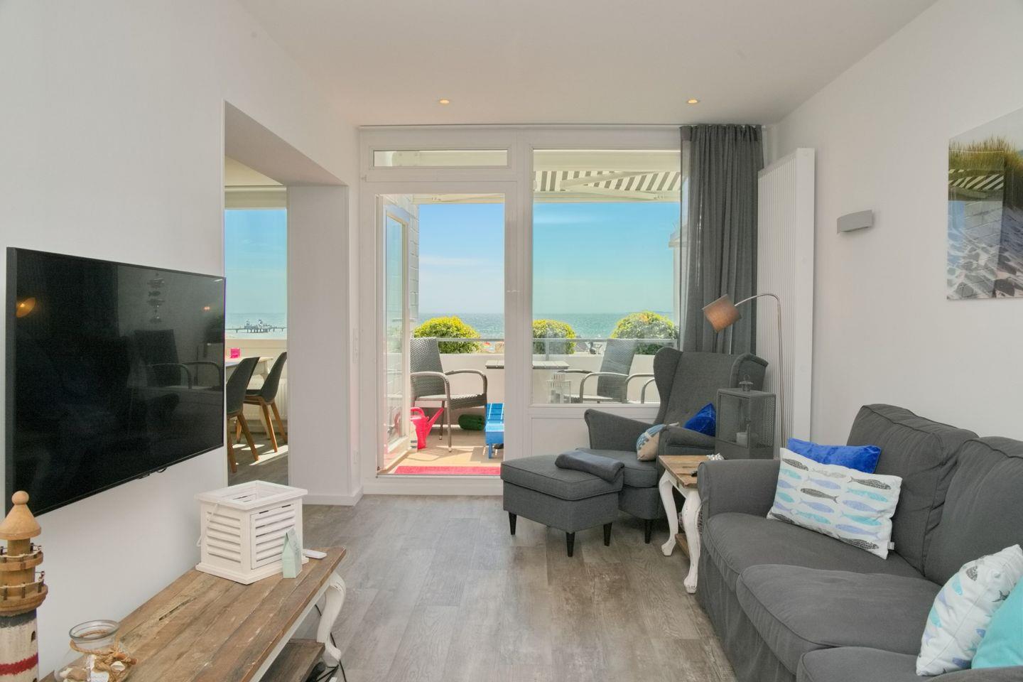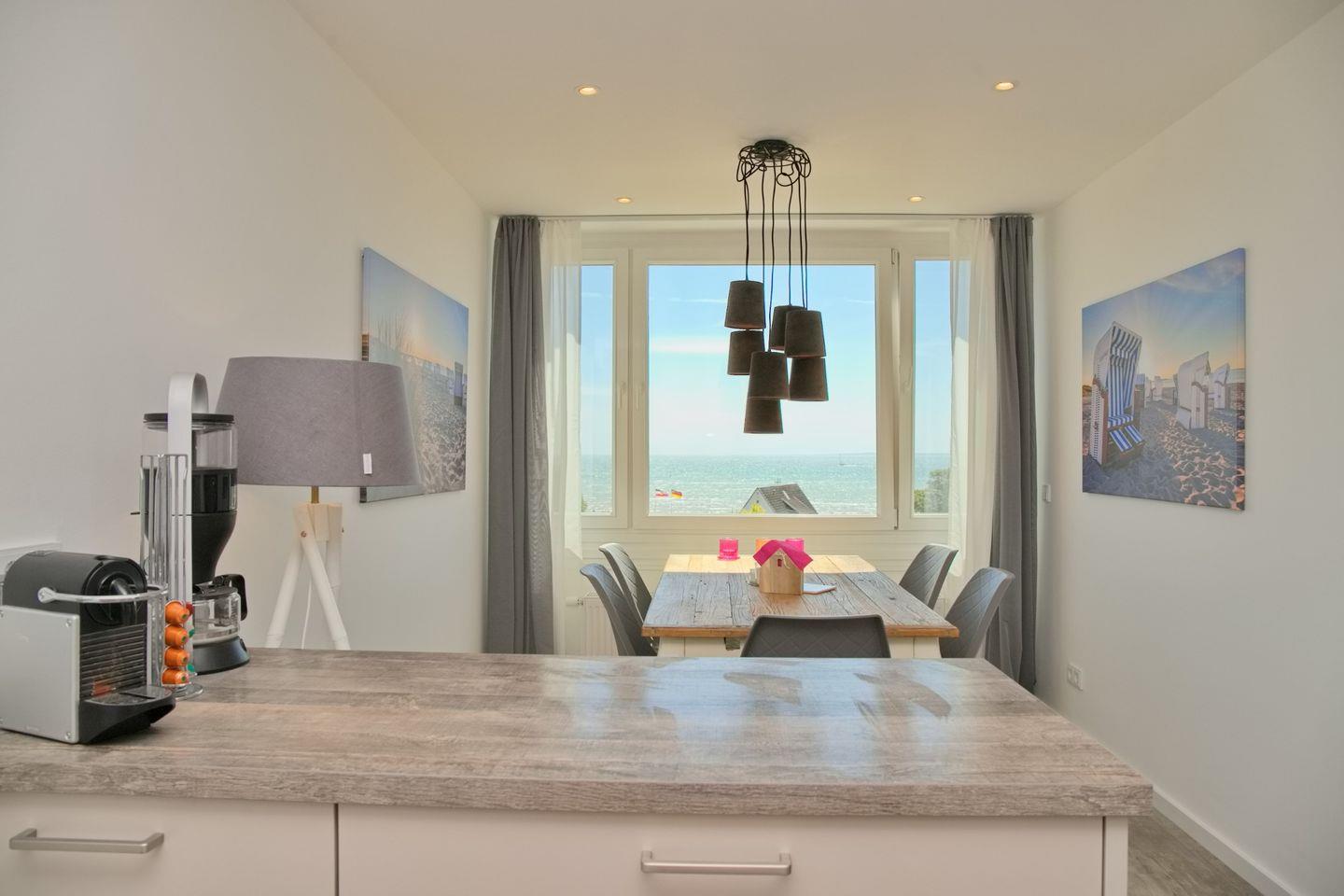 Moderne und aufwendig sanierte 3- Zimmer Ferienwohnung mit direktem Strandzugang und 100% Blick auf die Ostsee von Grömitz.