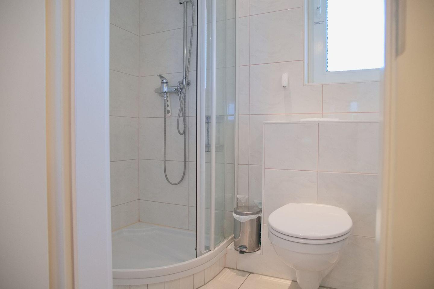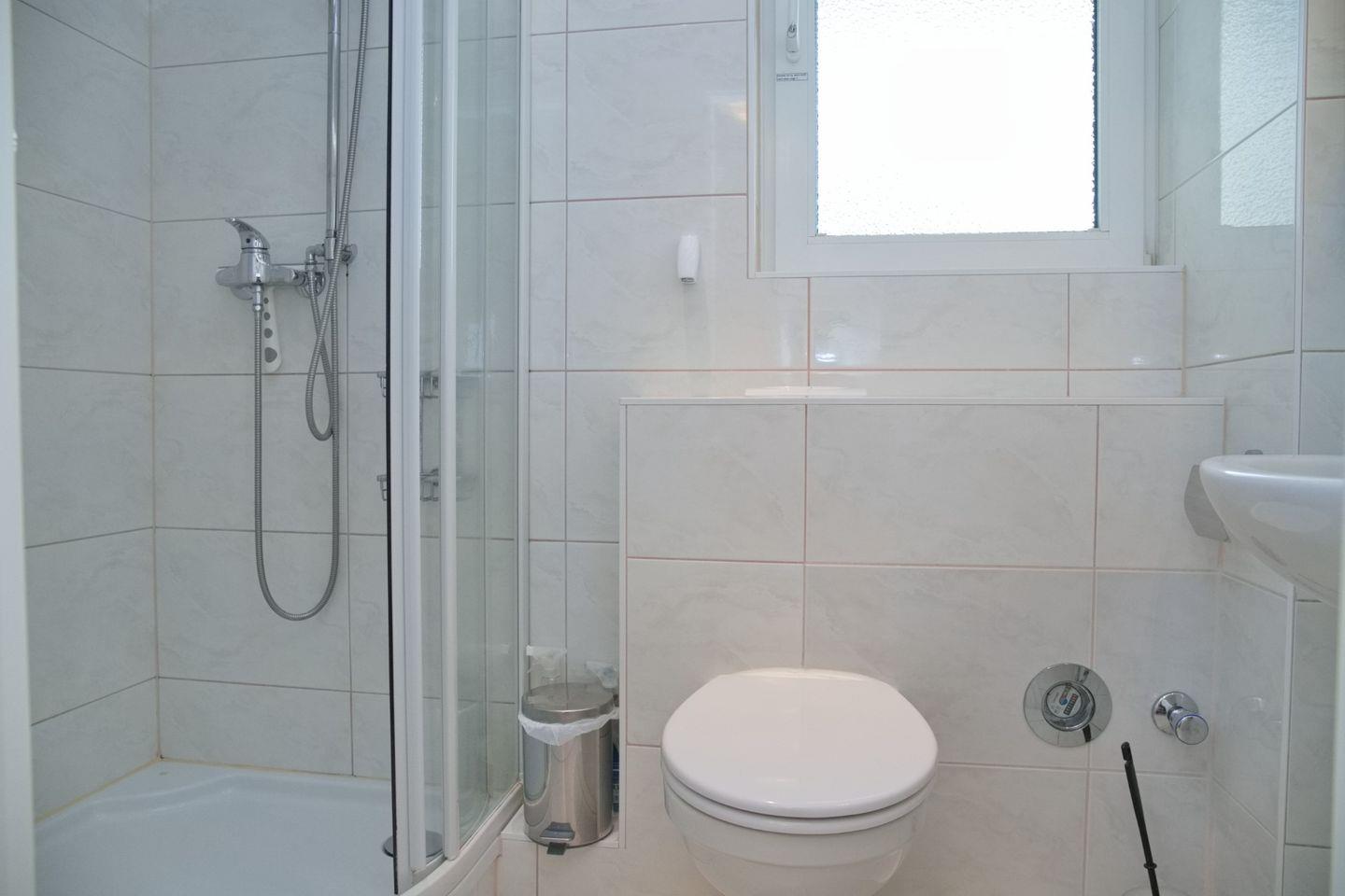 Die Wohnung verfügt über eine voll ausgestattete Küche, ein Badezimmer mit Dusche und ein Wohnzimmer mit gemütlicher Sitzecke.