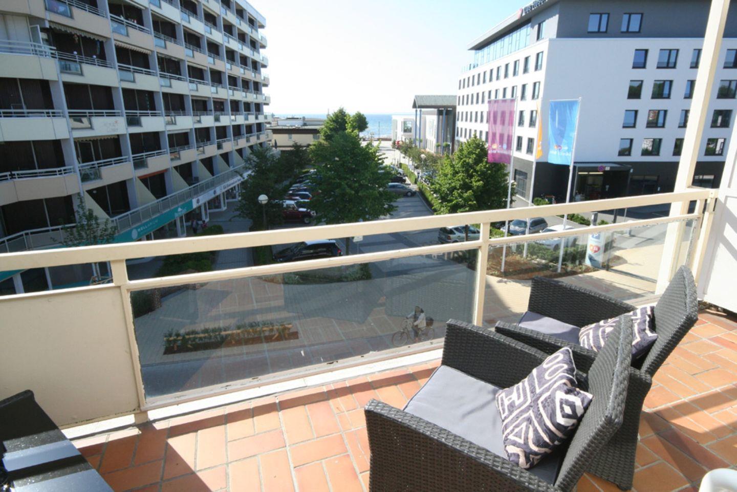 Moderne Ferienwohnung mit Balkon und Meerblick in bester Lage von Grömitz, nur wenige Meter zur Seebrücke und ins Zentrum.