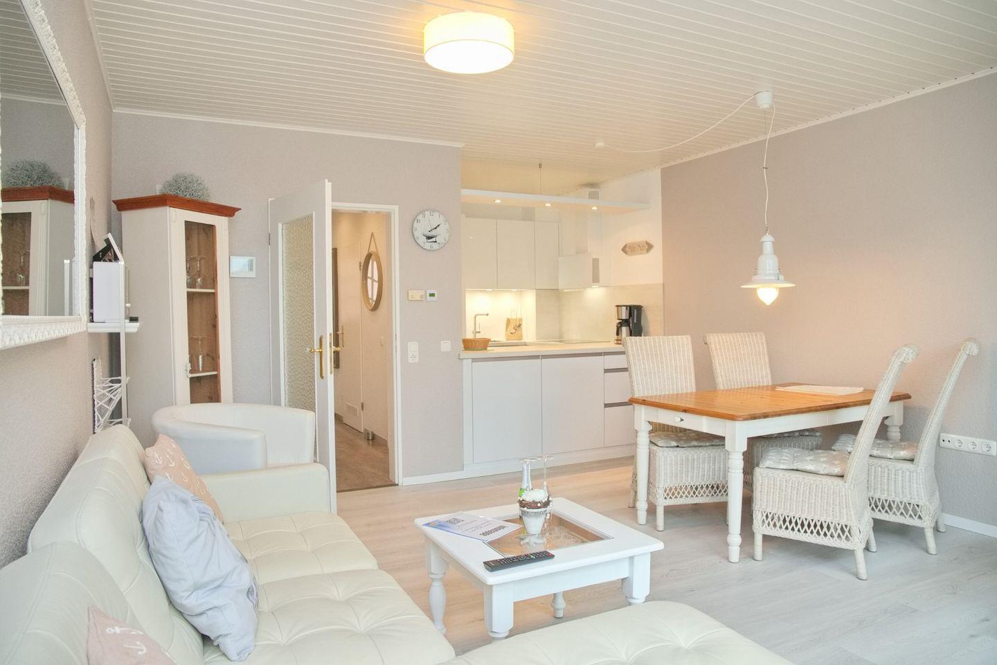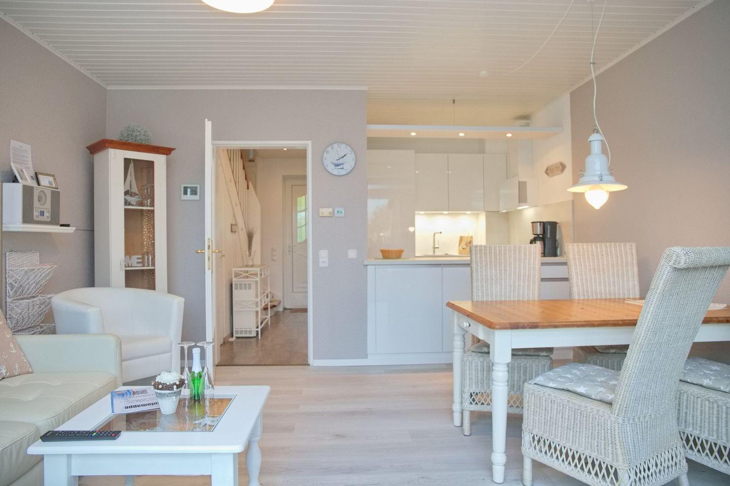 kleines freundliches Reihenhaus über 2 Ebenen mit möblierter Südwest-Terrasse und Garten in Strandnähe. 3 Zimmer stehen Ihnen hier zur Verfügung.