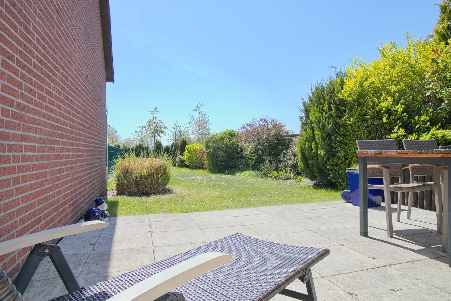 Vom Wohnbereich aus erreichen Sie direkt Ihre möblierte Terrasse, von der Sie die Sonnenstunden genießen können. Im Erdgeschoss des Hauses befindet sich auch das Badezimmer mit Dusche und WC.