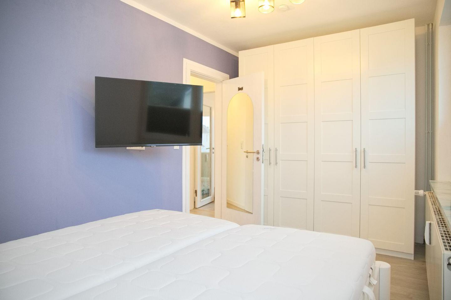 Die Wohnung verfügt über zwei gemütliche Schlafzimmer, in denen Sie nach einem erlebnisreichen Tag entspannen können. Der offene Wohnbereich ist lichtdurchflutet und lädt mit seinem geschmackvollen Design und moderner Einrichtung zum Verweilen ein. Eine voll ausgestattete, geschlossene Küche mit einem Induktionsherd und einem Gefrierfach im Kühlschrank ermöglicht es Ihnen, kulinarische Köstlichkeiten zuzubereiten. Der Essbereich in Kombination mit dem Wohnzimmer bietet genug Platz, um gesellige Abende zu verbringen.