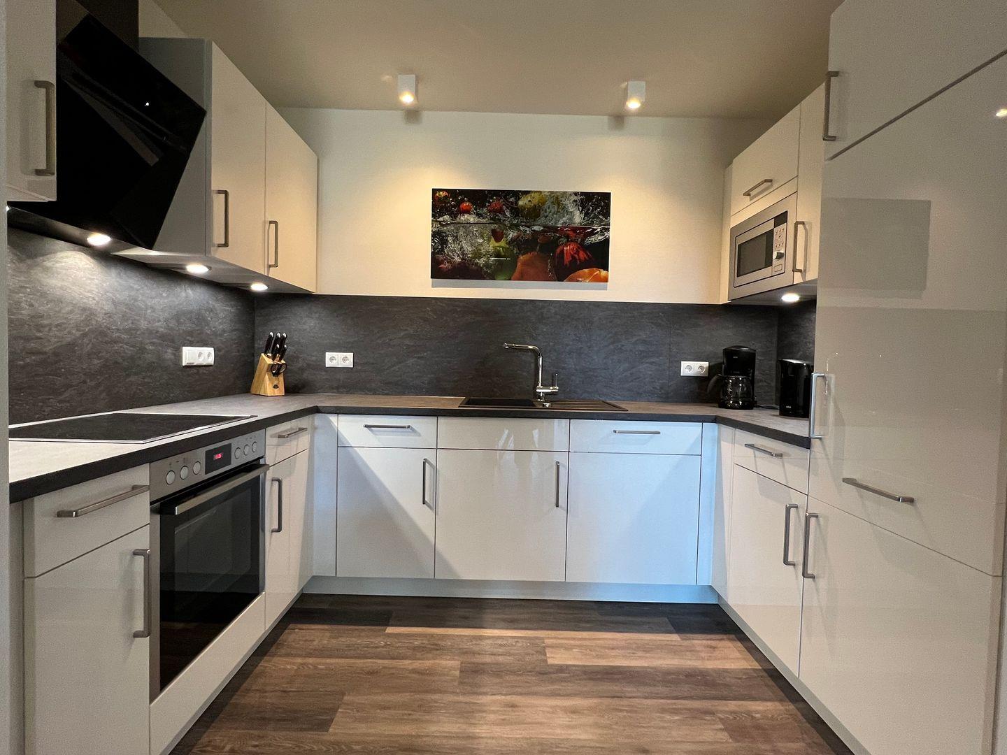 Die perfekt ausgestattete offene Küche lässt für ein perfektes Dinner keine Wünsche offen.