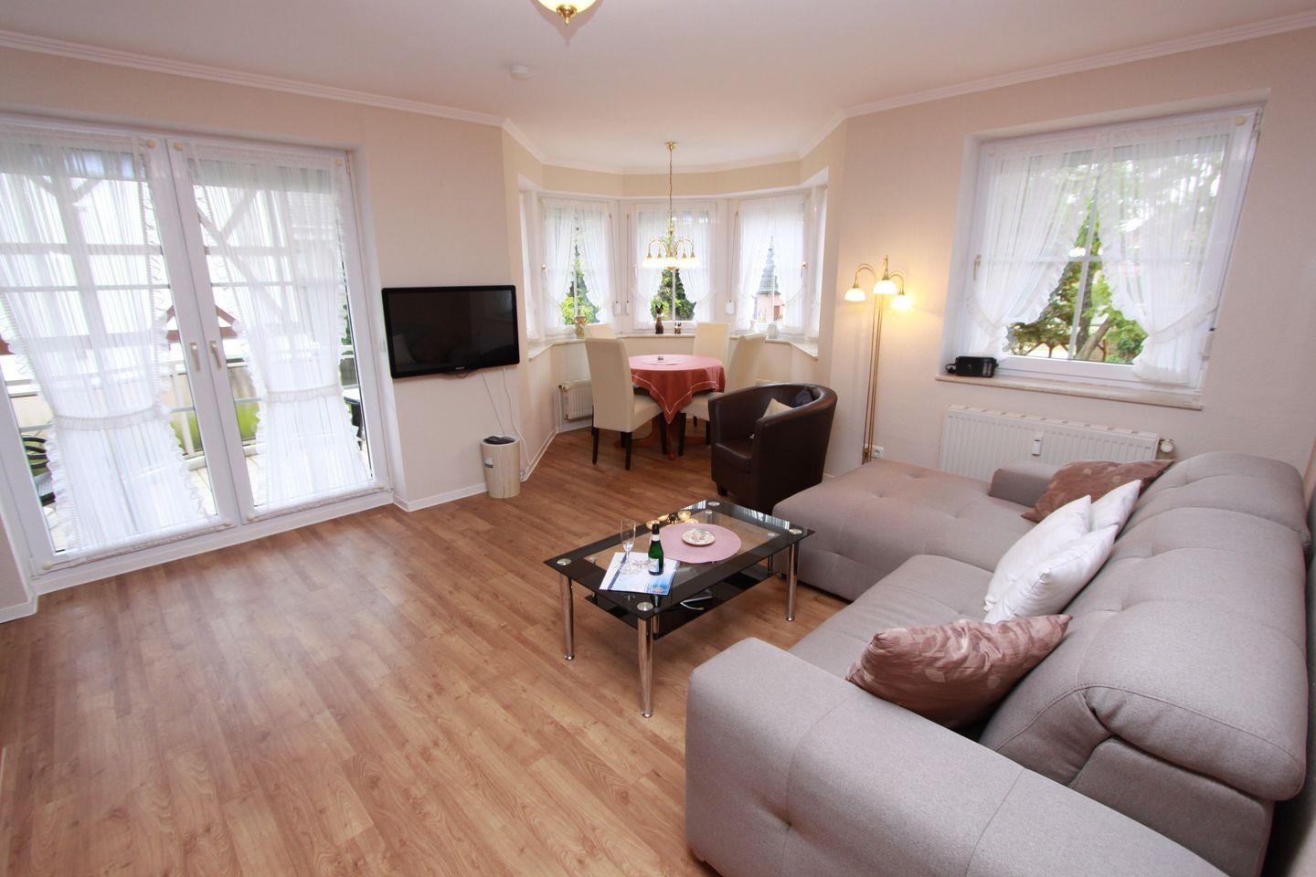 Gepflegte Ferienwohnung mit kostenfreien WLAN und möblierten Balkonen direkt im Zentrum von Grömitz nur wenige Meter zur Strandpromenade.