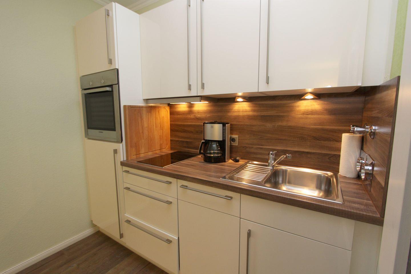 Die großzügige Wohnküche lädt zum gemeinsamen Kochen und Verweilen ein. Die moderne Küchenzeile ist komplett ausgestattet mit einem 2-er Induktionsherd, Backofen, Kühlschrank mit Gefrierfach, Geschirrspülmaschine sowie Wasserkocher, Toaster und hochwertigen Kaffeemaschine. Entspannen Sie auf der bequemen Eck-Ledercouch im Wohnbereich, während Sie Ihren Lieblingsfilm auf dem Smart-TV genießen.