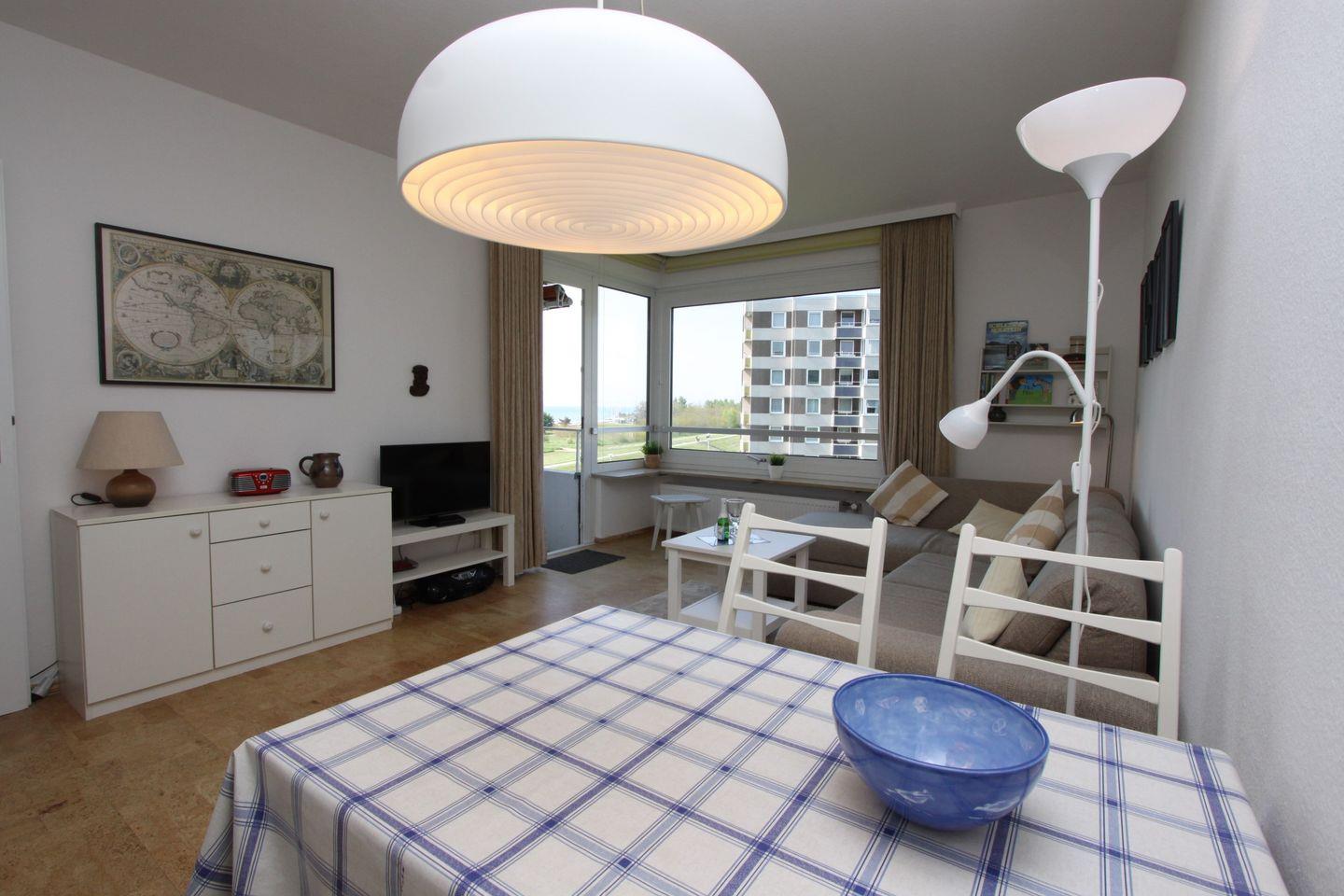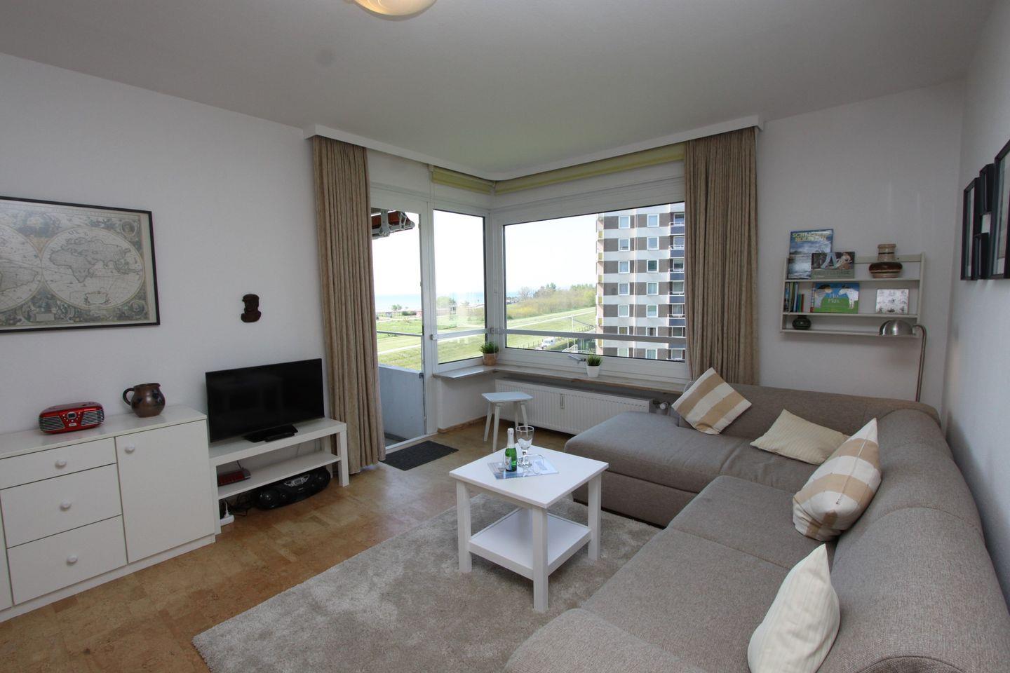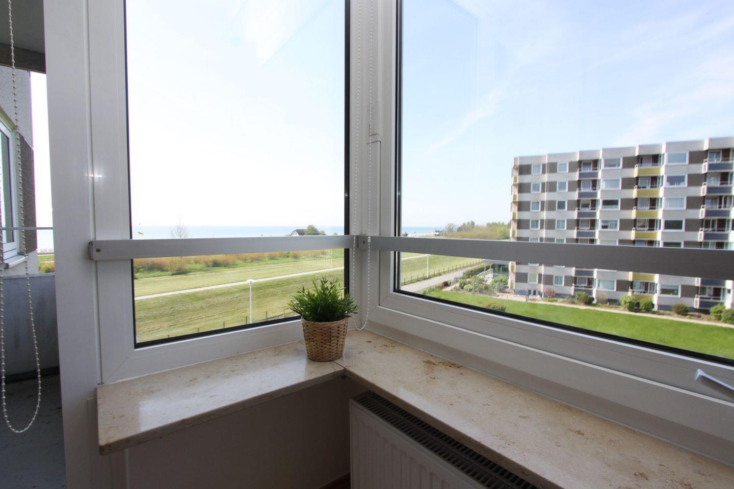Helle 2-Zimmer-Ferienwohnung in Grömitz mit Seeblick, Westbalkon und kostenlosem WLAN, nur wenige Gehminuten vom Strand entfernt.