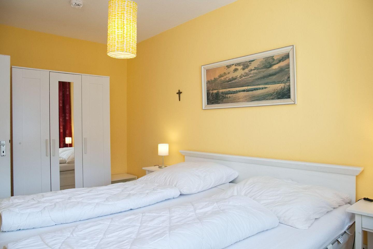 Im Schlafzimmer stehen Ihnen ein Doppelbett (180x200 cm) und ein Kleiderschrank zur Verfügung.