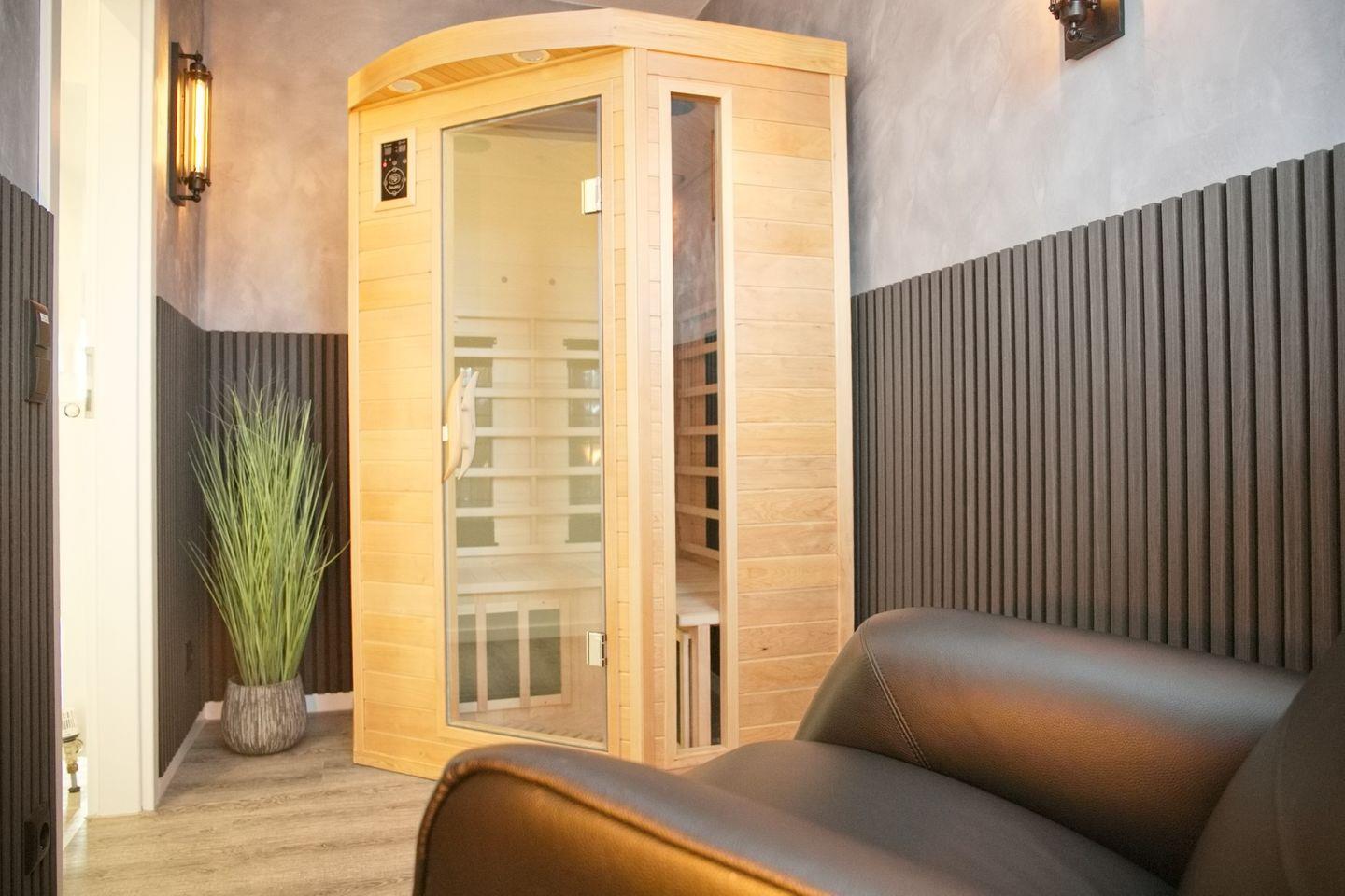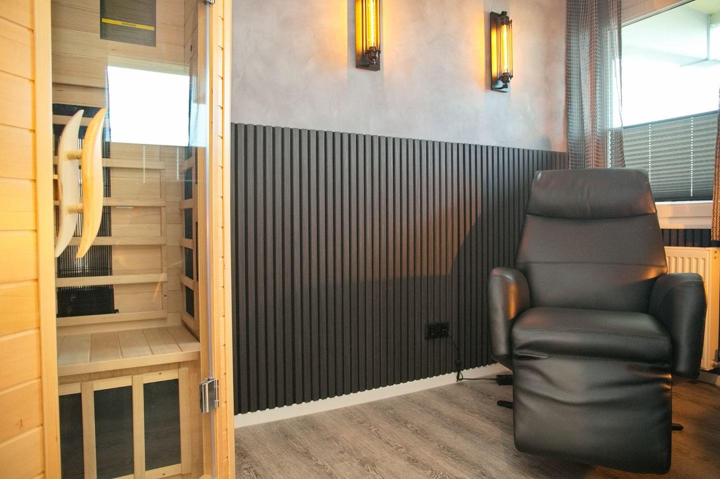 Ein besonderes Highlight der Wohnung ist der Ruheraum, der mit einer Infrarotsauna und einem elektrischen Relaxsessel ausgestattet ist – der perfekte Ort, um die Seele baumeln zu lassen.