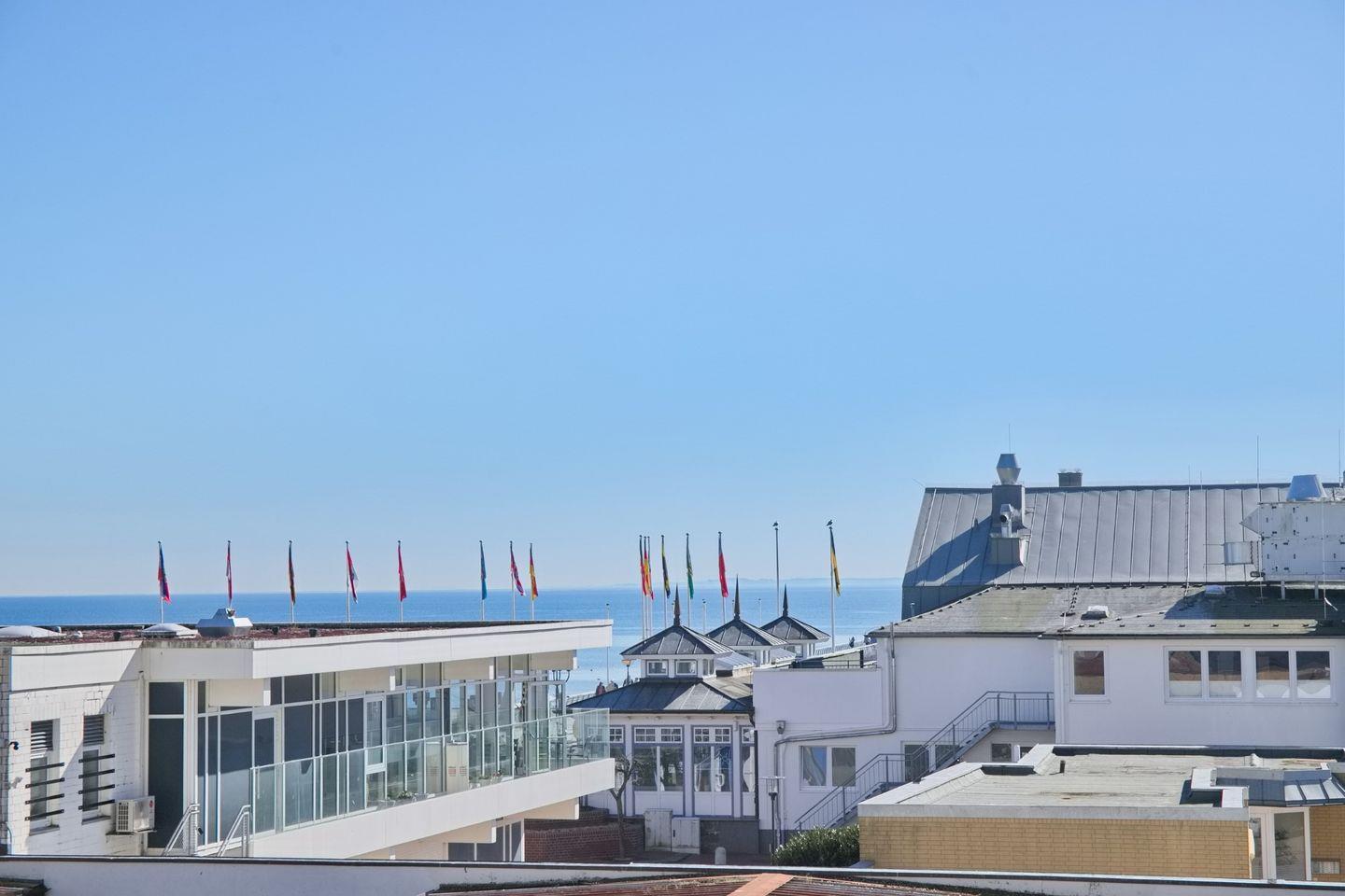 sehr schöne 3 Zimmer Ferienwohnung mit möblierten Balkon in Südlage und Teilseeblick Richtung Seebrücke.