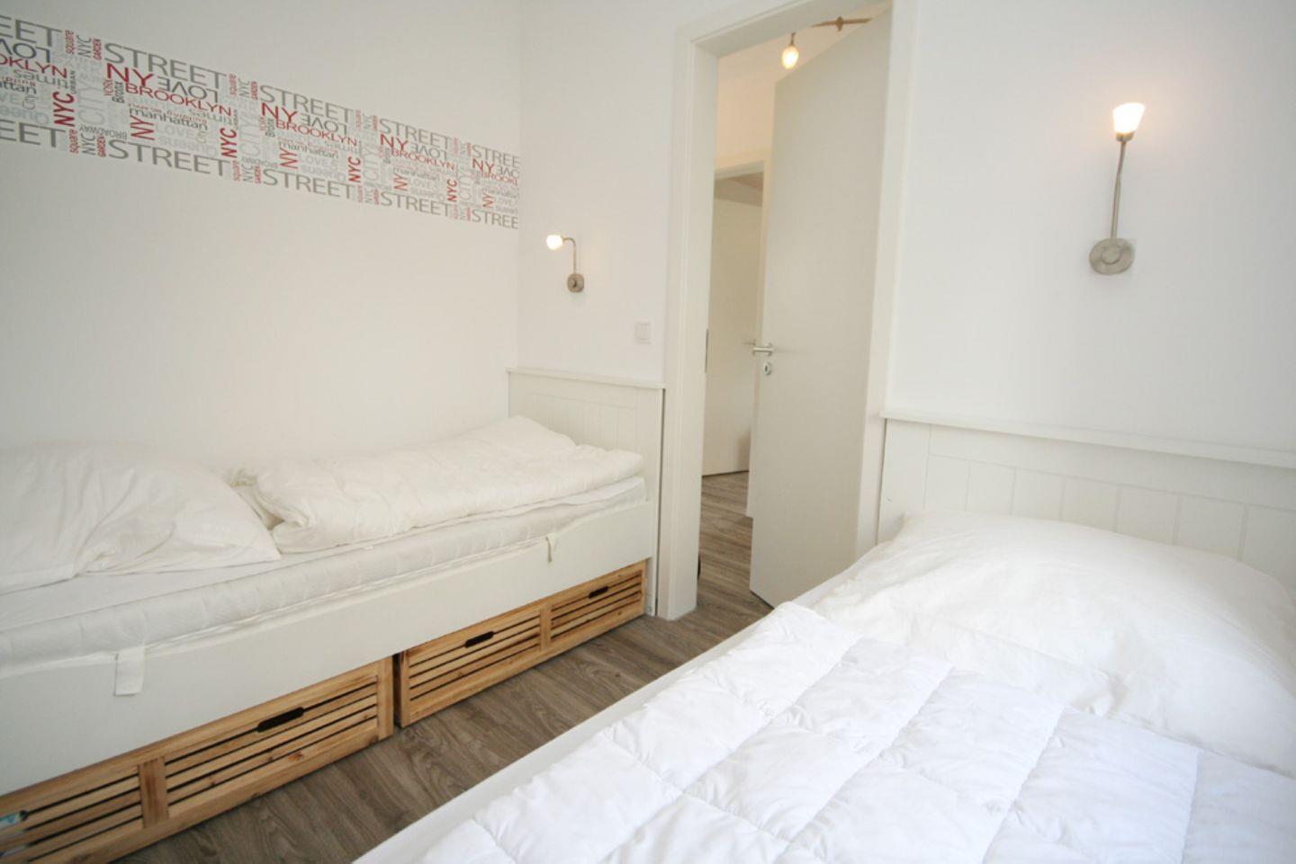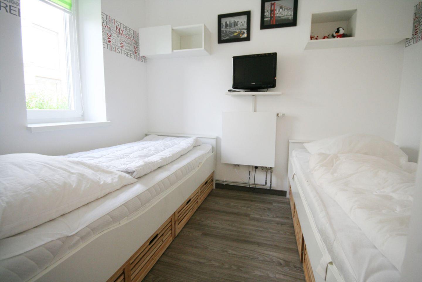 Im Kinderzimmer stehen 2 Einzelbetten (90 x 200 cm) und ein Flach-TV mit DVD Laufwerk.