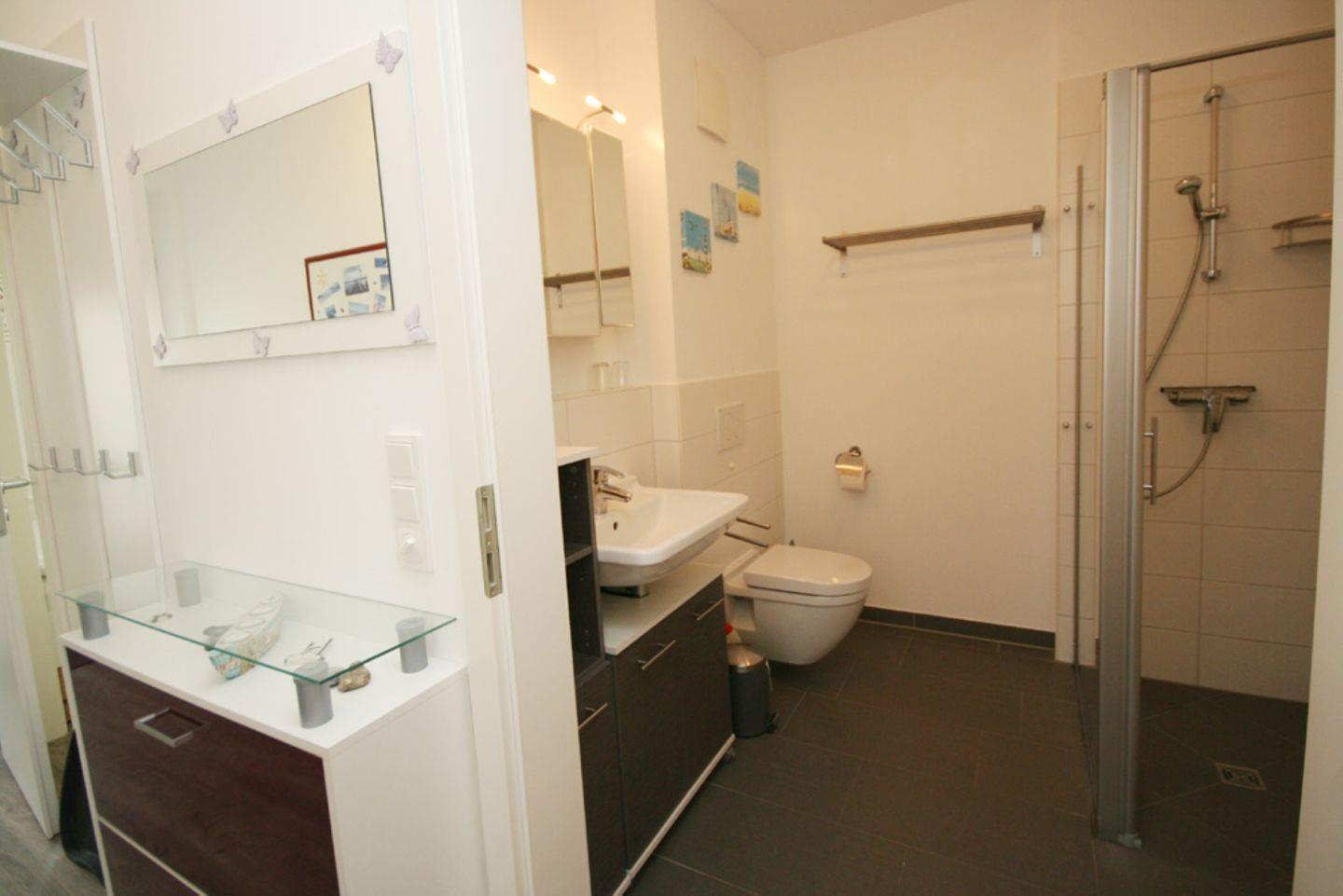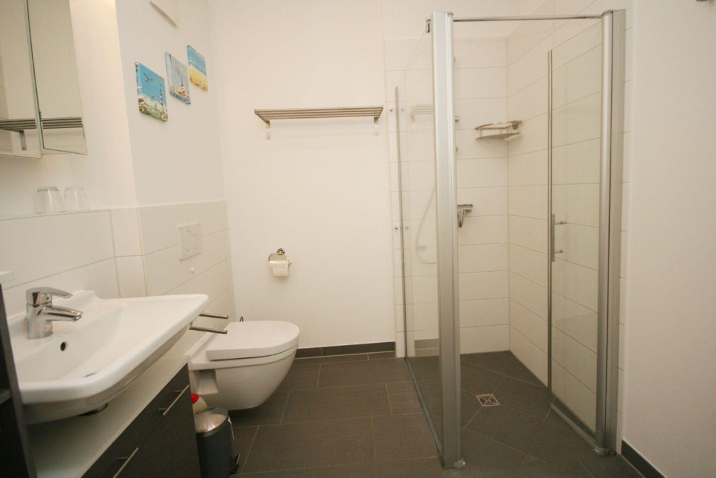 Die Wohnung verfügt über ein schönes großes Duschbad/WC. Die komplette Wohnung ist mit designet Planken ausgelegt.