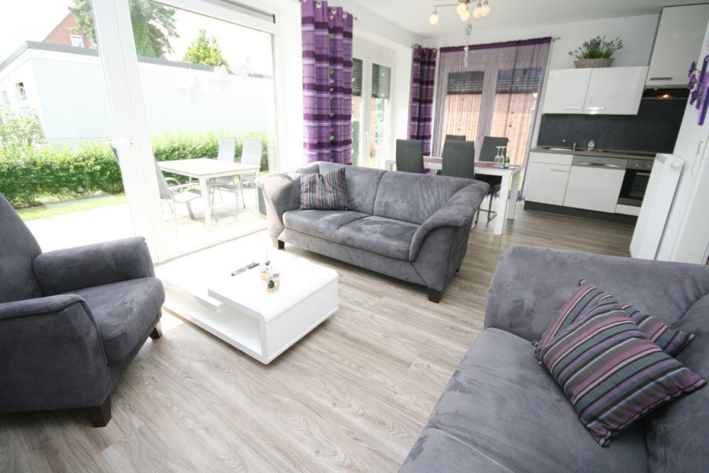 Sehr schöne, neuwertige und moderne 3-Zimmer-Eckwohnung (ca. 55 qm) für max. 4 Personen mit Garten, möblierter Terrasse in Westlage und einem Stellplatz +W-Lan.