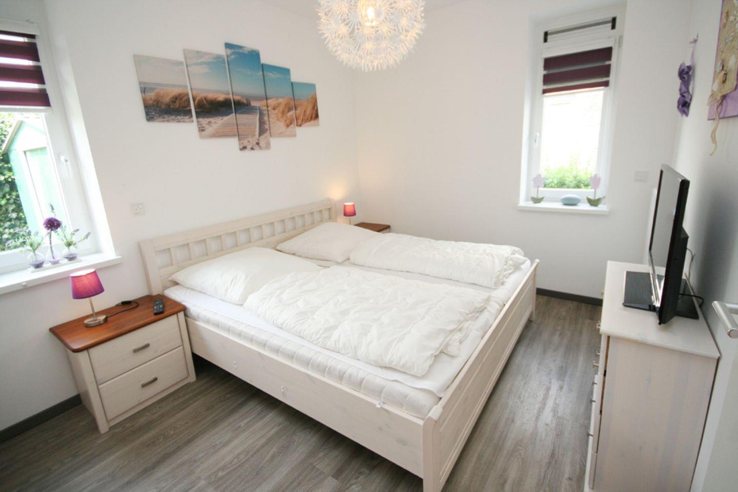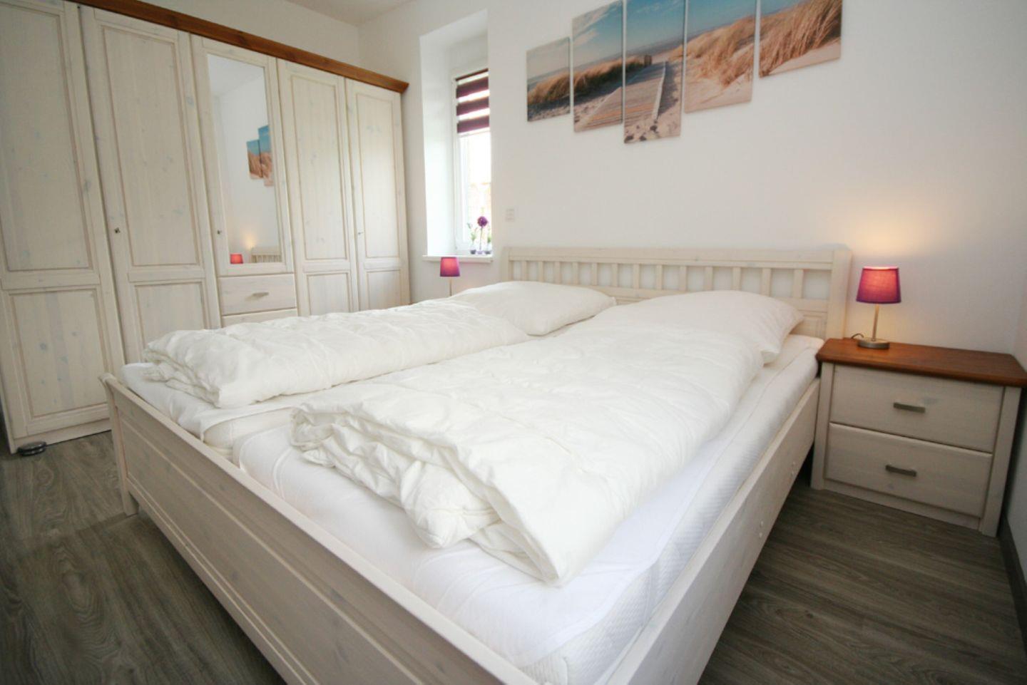 Im Elternschlafzimmer befindet sich ein Doppelbett (180 x 200 cm), ein Kleiderschrank und eine Kommode mit Flach-TV. Bei Bedarf kann ein Kinderreisebett dazugestellt werden, dieses passt mit in das Schlafzimmer.