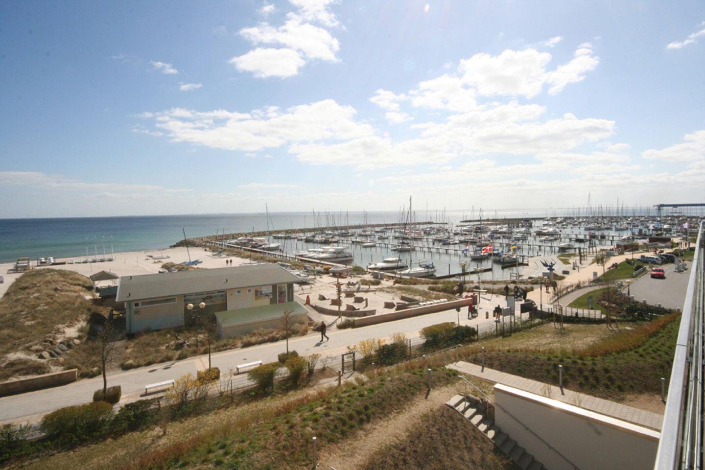 Der möblierte Balkon lädt zum verweilen ein und hat einen traumhaften Blick über die Lübecker Bucht, vom Yachthafen bis zur Seebrücke.