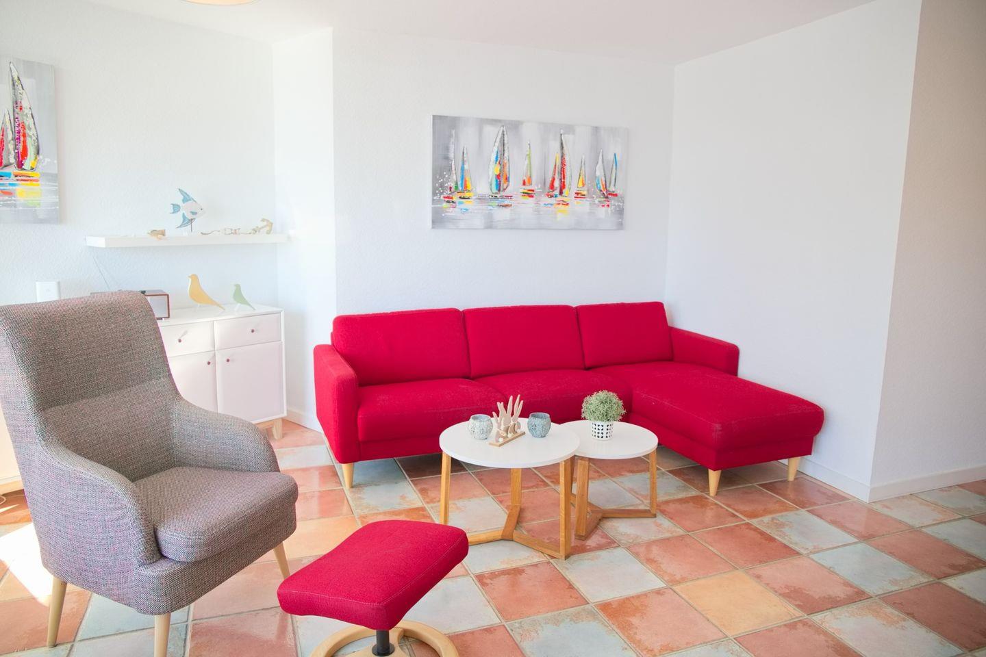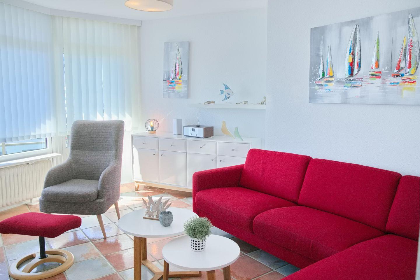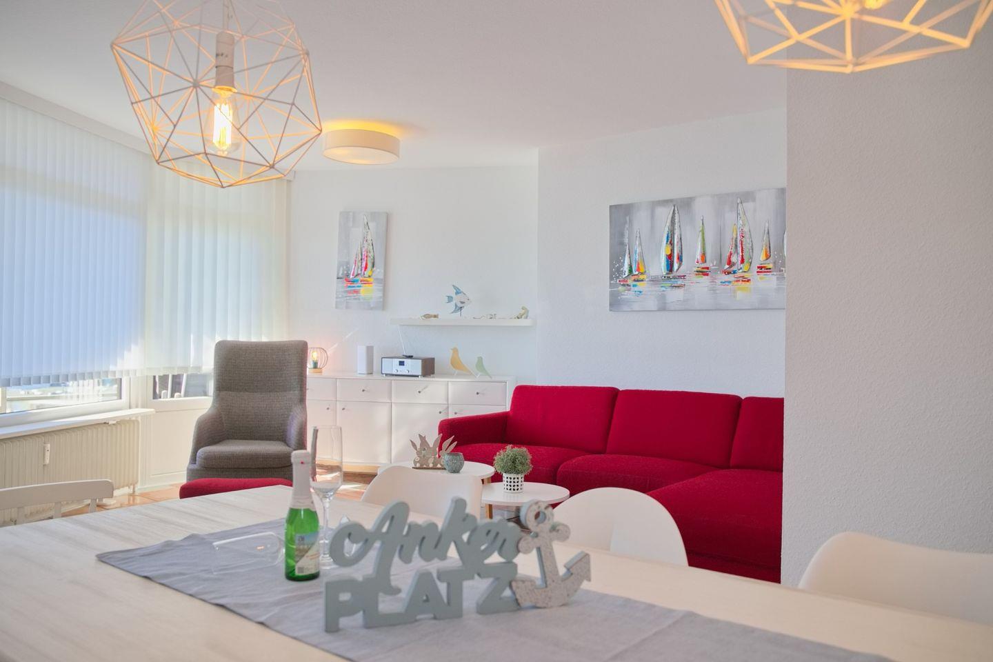 Stylisch eingerichtete Ferienwohnung mit komfortabler Ausstattung, möblierten Westbalkon und schönen Teilseeblick im Herzen von Grömitz.