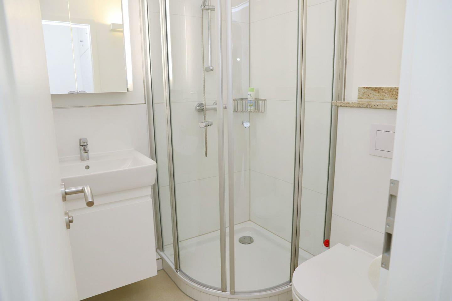 Das Bad ist mit einer Dusche ausgestattet und zeitgemäß und funktional gestaltet. Zu den weiteren Annehmlichkeiten gehören WLAN, ein CD-Player, eine Waschmaschine und ein Gemeinschaftstrockner im Waschkeller, um Ihren Aufenthalt komfortabel zu gestalten.