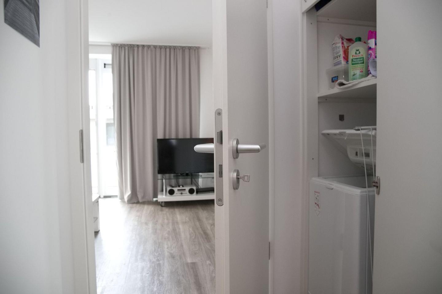 Die drei Zimmer Wohnung im 1. Obergeschoss (mit Fahrstuhl) hat ca. 56m² Nutzfläche und ist für eine Belegung mit bis zu vier Personen geeignet. Wohnraum mit Flach TV, WLAN, Radio, Küchenzeile mit Geschirrspülmaschine, Backofen, Kaffeemaschine. Balkon inkl. Möbeln (ca. April bis Oktober). Einbaunische im Flur mit Waschmaschine, 2 Schlafzimmer, beide mit Flach TV und Außenjalousien mit Fliegengittern, Badezimmer mit Dusche, WC und Fußbodenheizung.