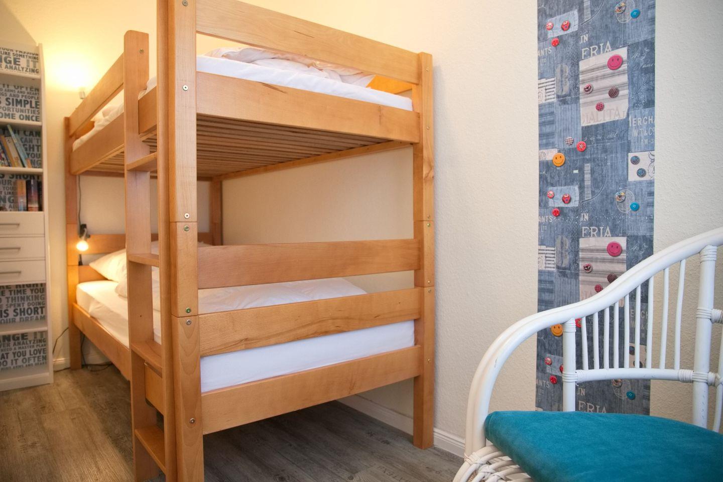 Diese sehr schöne 3-Zimmer-Wohnung (ca. 53 m²) für max. 4 Personen befindet sich in der 7. Etage mit Meerblick auf die Seebrücke. Der möblierte Balkon befindet sich in Südlage. Das Wohnzimmer verfügt über eine Eckcouch und Sessel, großen Flach-TV, CD/Radio mit USB sowie eine Essecke für 4 Personen. Die zum Wohnzimmer offene neue, moderne Einbauküche ist mit einem Cerankochfeld, Backofen, Geschirrspüler, Kühlschrank mit Gefrierfach sowie mit Toaster, Kaffeemaschine, Wasserkocher ausgestattet. Das Schlafzimmer ist ausgestattet mit einem Doppelbett (2 x 90 x 200 cm), sowie 2 Nachtschränke. Im Kinderzimmer stehen ein modernes Etagenbett und Sessel. Ein großer Kleiderschrank auf dem Flur bietet viel Stauraum. Das neue Badezimmer verfügt über eine ebenerdige Dusche