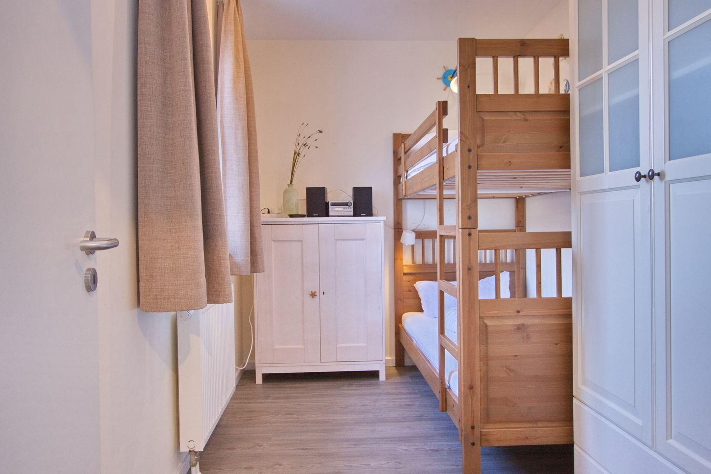 Im 1. Kinderzimmer befindet sich ein Etagenbett (90*200cm), ein kleiner Tisch und ein Kleiderschrank.