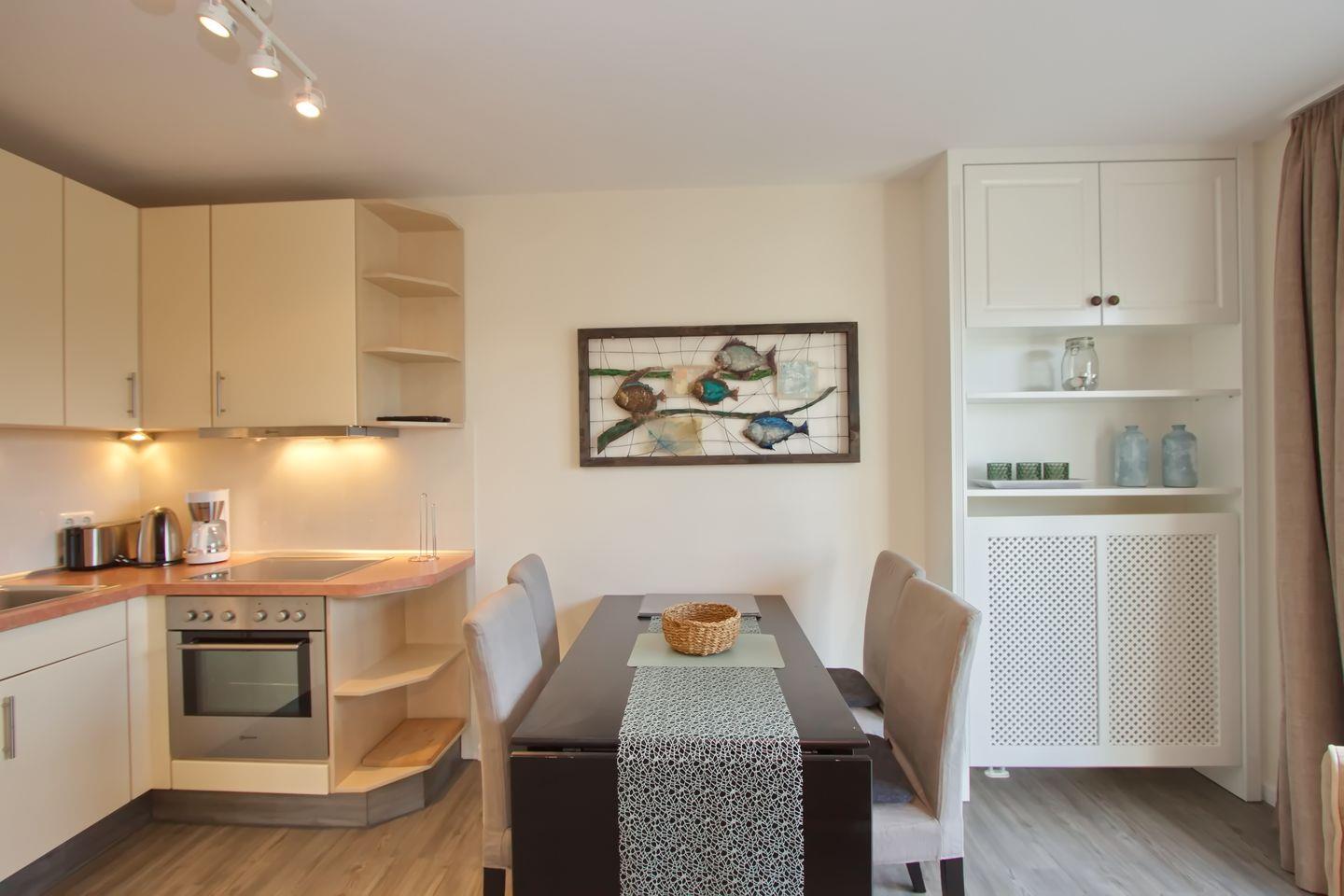 Der Essbereich für 6 Personen lädt zum gemeinsamen Beisammensitzen ein und eignet sich für tolle Spielabende. Die zum Wohnzimmer offene Einbauküche ist für Sie mit einem Cerankochfeld, Backofen, Kühlschrank mit 3* Gefrierfach, Spülmaschine, Mikrowelle, Kaffeemaschine, Wasserkocher und Toaster ausgestattet.