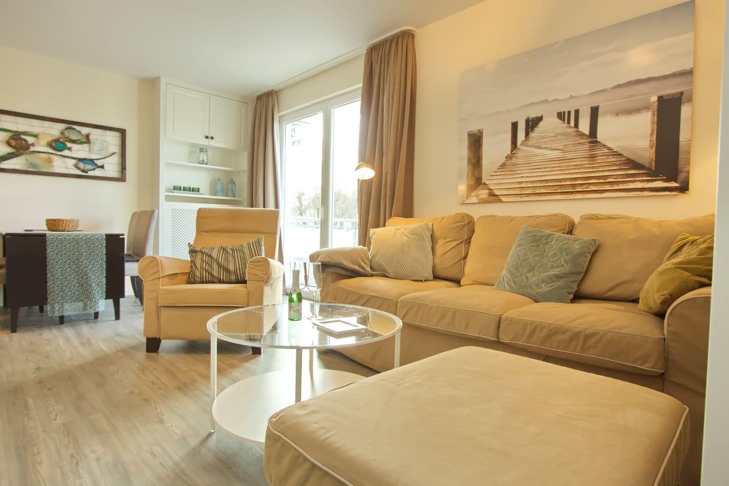 Helle Ferienwohnung in Grömitz mit Balkon, WLAN und nur 200 m vom Strand entfernt, ideal für Familien und Erholung.