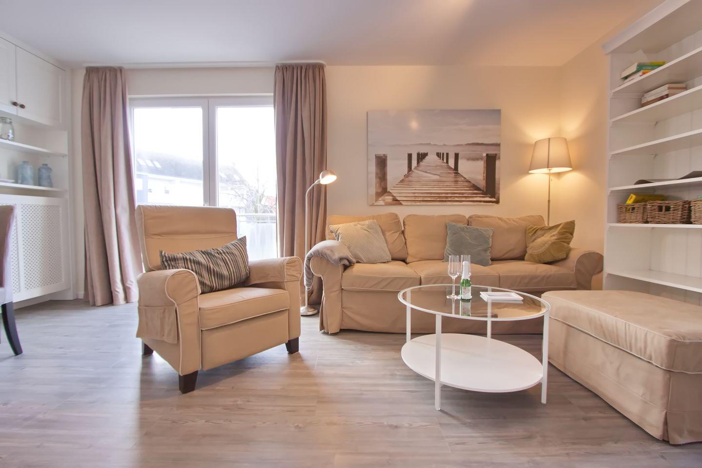 Großzügige helle 4 Zimmer Ferienwohnung mit möbliertem Südbalkon nur 3 min Fußweg zur Strandpromenade. Zentrale Lage. WLan Zugang inkl.