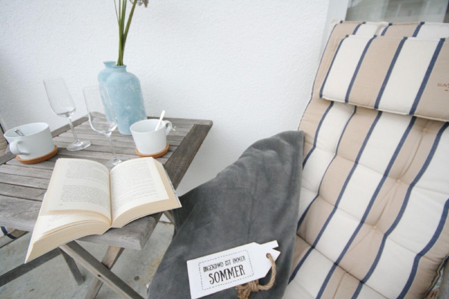 Der möblierte Balkon befindet sich in Süd-Westlage.