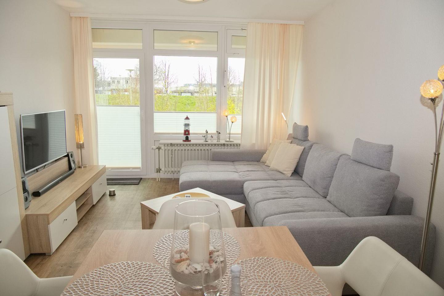 Moderne, helle Ferienwohnung direkt hinter dem Deich in Zentraler Lage und möblierten Südbalkon. Nur ein Steinwurf von unsere Seebrücke entfernt.