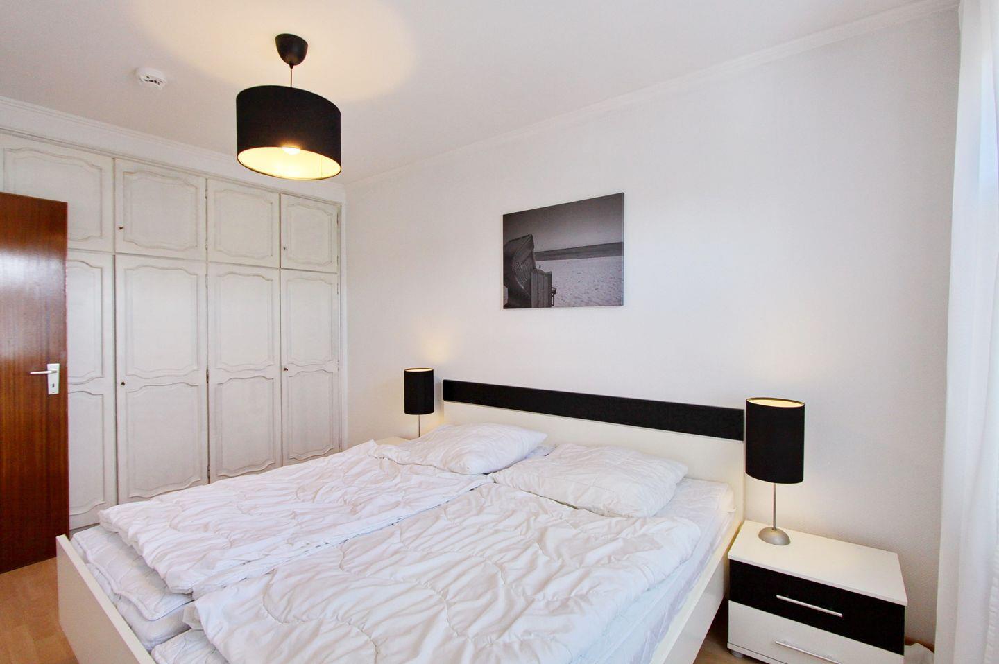 Das geräumige, große Schlafzimmer hat ein Doppelbett und einen eingebauten, großen Kleiderschrank.
